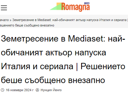 Земетресение в Mediaset: най-обичаният актьор напуска Италия и сериала
