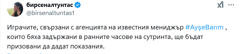 Полицейски екипи претърсват къщата на Айше Баръм и нейния фирмен ID İletişim: