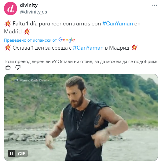 Испанските фенове на Can Yaman имат късмет. Турският актьор, който стана популярен благодарение на ролите си в сериалите "Pájaro soñador" ("Мечтателна птица"), "Dolunay" и "Violeta como el mar", се отправя към Мадрид този уикенд, за да се срещне с феновете си и да празнува „Запознайте се и поздравете“, което се състои от вечеря, размяна на няколко думи и възможност за снимка с вашия идол.