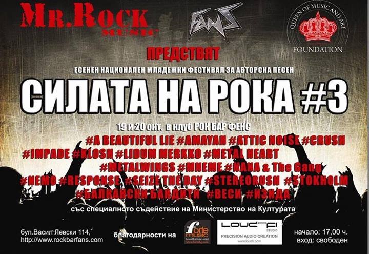 На 21 септ., в Маймунарника, поредното издание на "Силата на рока" - фестивала на Милена за изгряващи нови БГ групи. (Май пак ще съм в журито, ха-ха, не съм пропускал от 2013-та - виж по-долу Simple Smile Дано до тогава ми мине кракът, че нещо не ходя напоследък като здрав човек...)