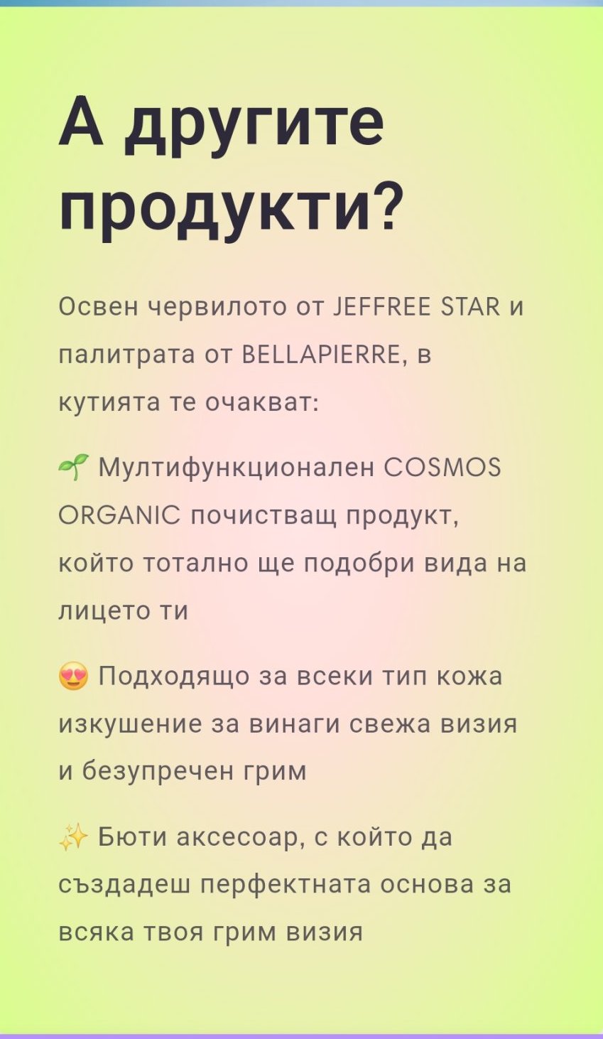 Тази кутия естествено си позволих да споделя, тъй като 1. съдържанието вече беше показано от Кибрит и 2. наистина ме впечатли много! Определям я като супер Коледен подарък за дами може би от 30-те и нагоре.
