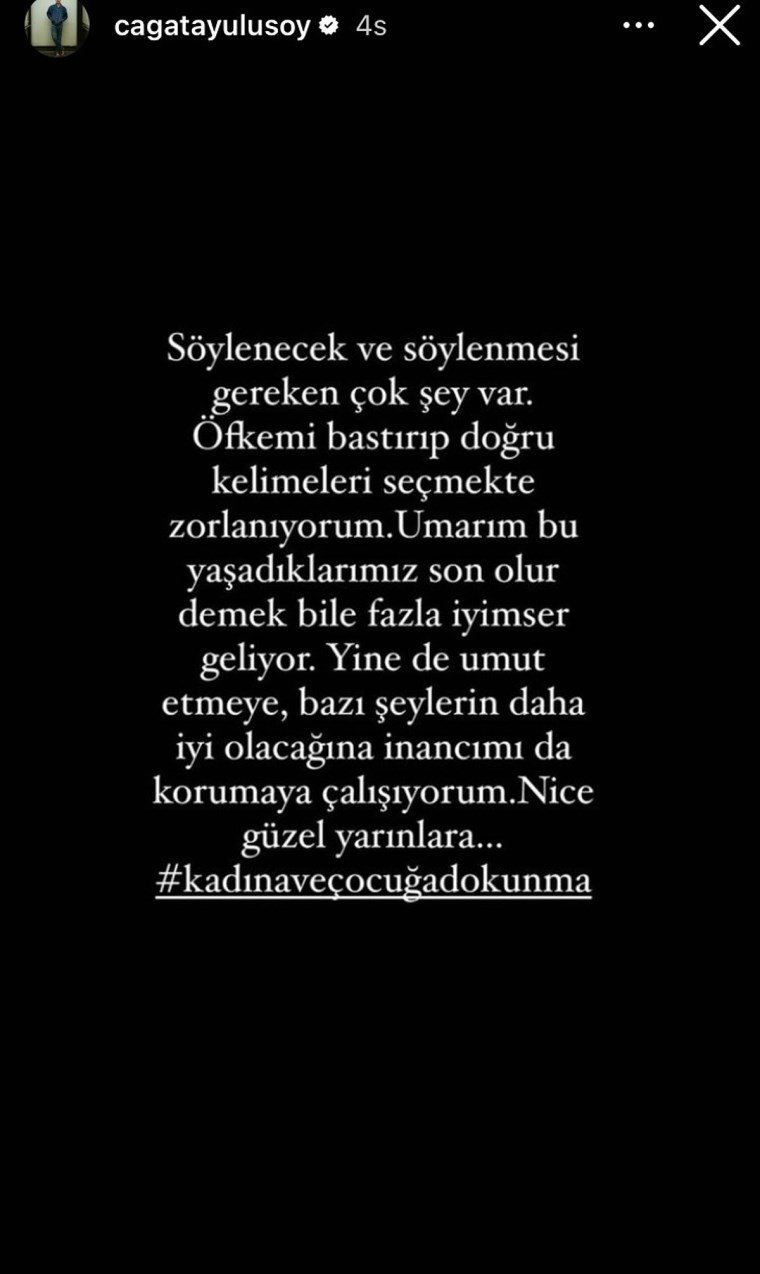 Актьорът Чаатай Улусой и певецът Таркан изразиха реакциите си към убийствата на жени след инцидента в профилите си в социалните мрежи.