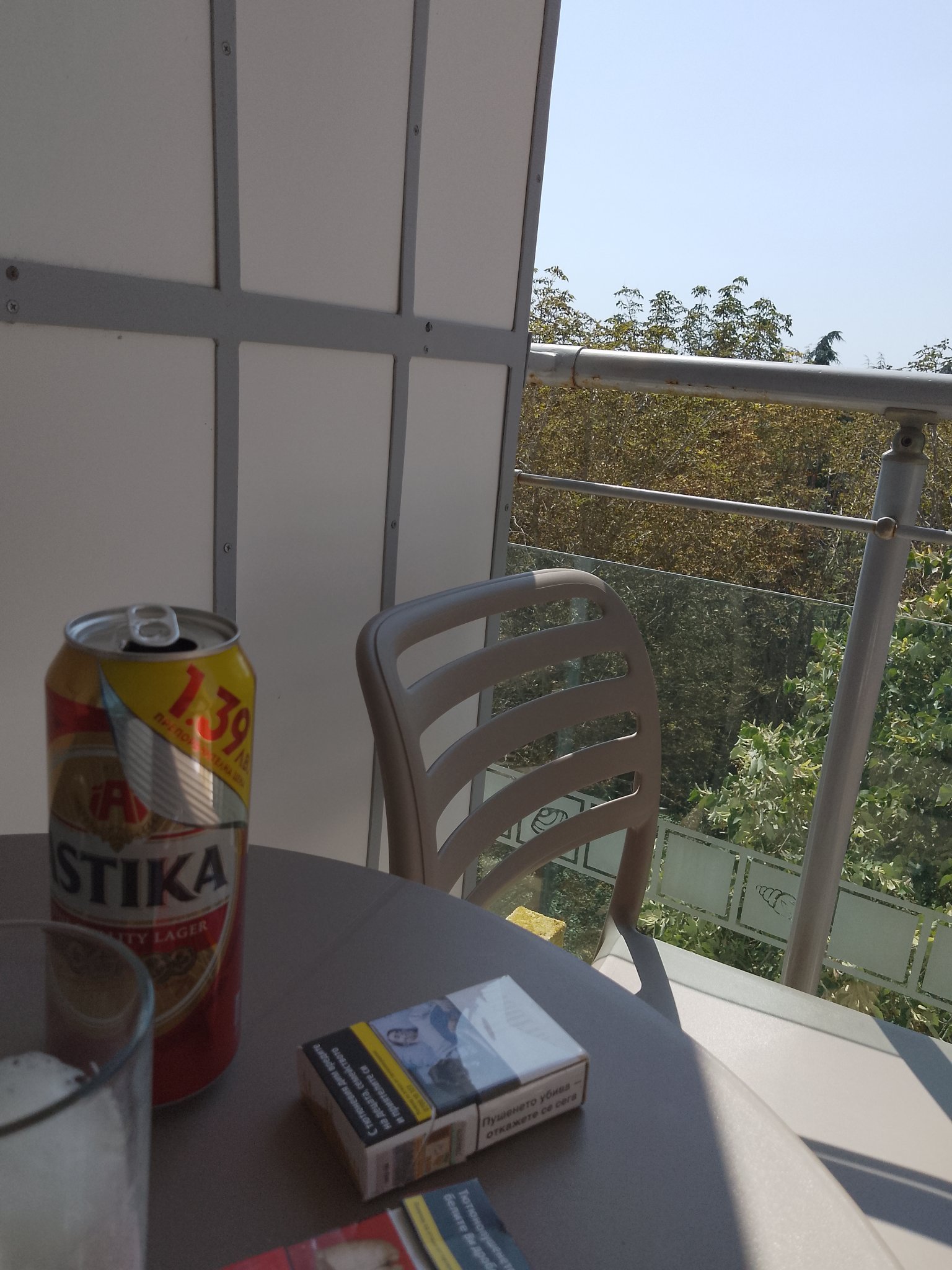 Може да няма бутилирана бира, но в мини бара в стаята има в кутийка. Това е част от терасата. Сушката не е ръждясала, нито парапета. Всичко е супер 😂