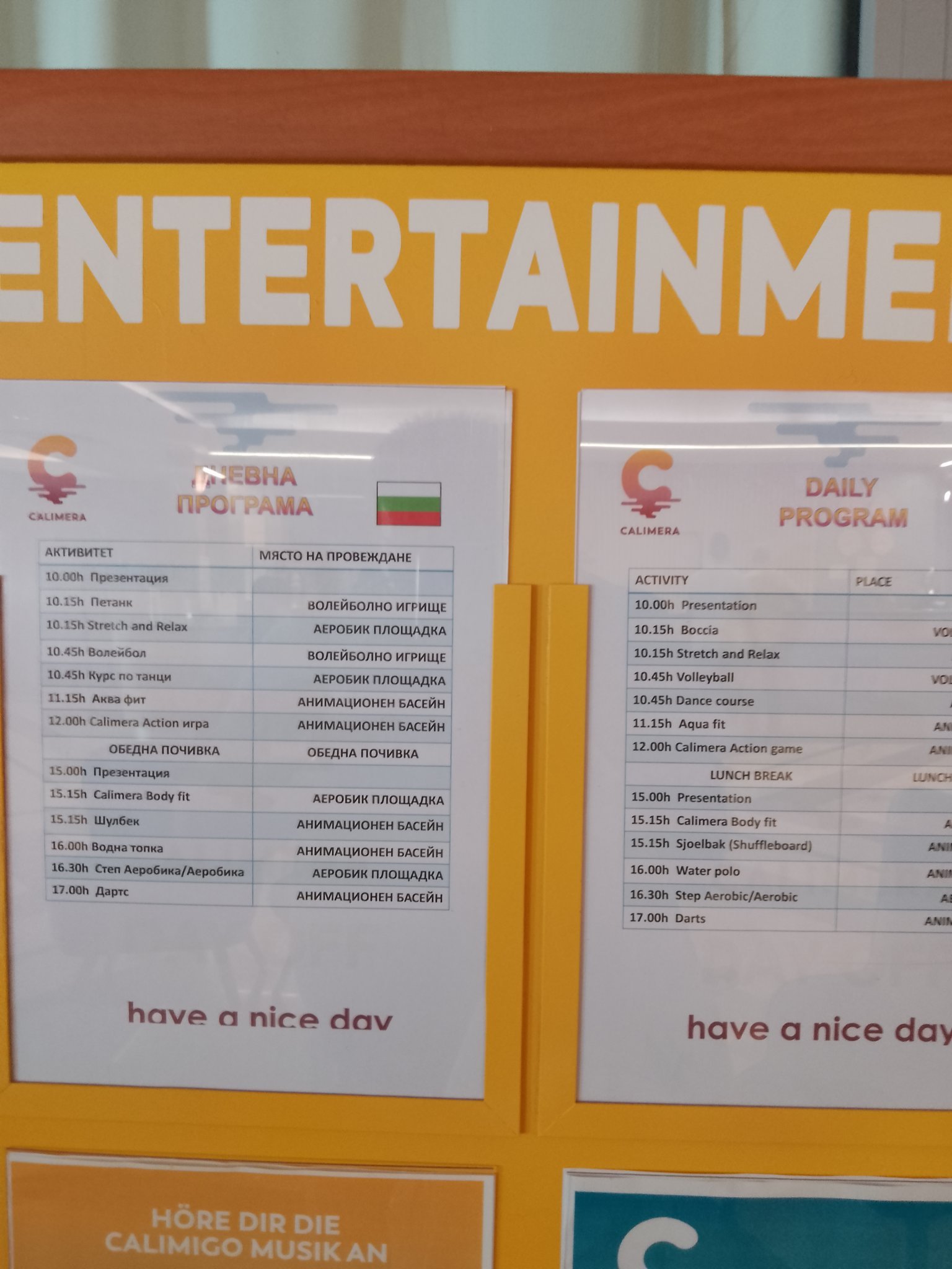 Само за анимацията ще ям калая от принцеса Лея, като кажа, че почти няма такава 😂 може би защото няма хора - има две баби и едно момиче на 2 годинки, и правят две стъпки напред, една назад без музика - това е в момента...но сигурно няма да е така, има закачена програма във фоайето, но не съм я разгледал още. Вие ми се свят от пътя. Ще взема да му ударя една бира да се освестя малко, но чакам да стане 12 часа, защото преди 12 пият само алкохолиците. Айде приятен ден и като събера още впечатления, ще докладвам пак.