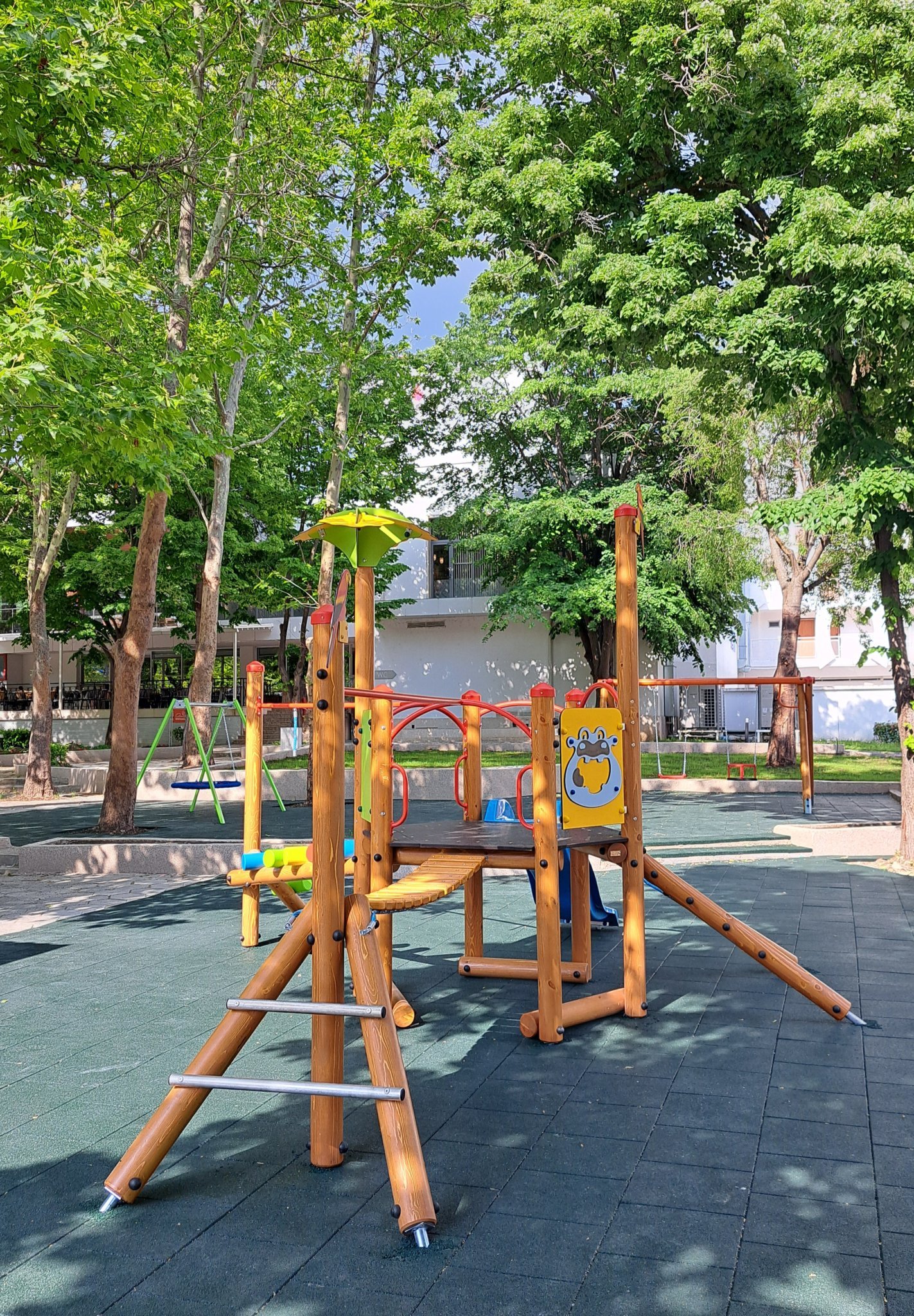 На старото му място има нова детска площадка с ударопоглъщаща настилка.
