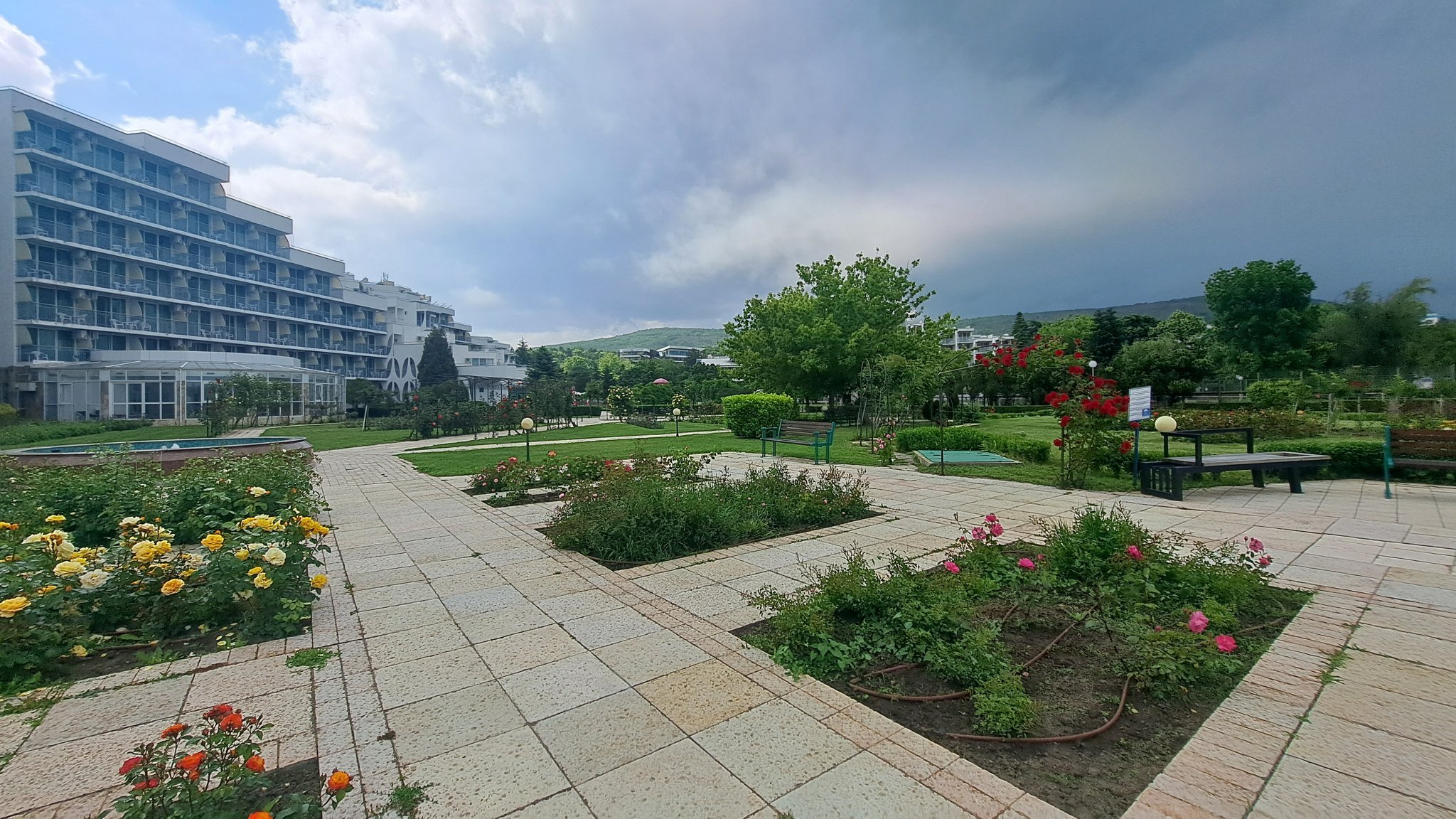 Привет от Албена! 😍 Пристигнахме по обед, след проливен дъжд във Варна, тук ни посрещна слънце! Към 17ч валя и тук, но за кратко! Има малко хора в комплекса, от хотелите работят почти всички на първа линия - от Боряна до Калиакра. Ресторант Поко Локо е преместен в балата къща (мексиканската) срещу малкото Алдо, до х-л Добруджа. На старото му място има нова детска площадка с ударопоглъщаща настилка.