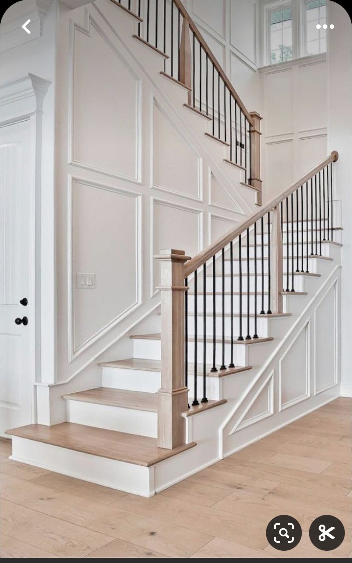 По ваши препоръки взехме боя на Бенджамин Муур и сме страшно доволни от резултата Heartpulse Пак из прочетеното тук решихме да боядисаме стени и таван в един цвят и се получи разкошно! Наредихме и ламината- навсякъде е ламинат без баните, мокрото помещение и котелното. Сега идва ред на стълбището. Понеже много държа на дървено стълбище- ще приложа снимка на това което се опитвам да постигна, поръчахме стъпалата от масивна дървесина- дъб. За чела ще сложим бяла плоскост. Питането ми е за парапета- къде да намеря красив и качествен дървен парапет (Пловдив и околността)? Искам да е бял. Намираме разни заготовки в големите строителни магазини, но ще трябва и да търся къде да ми ги боядисат прахово, за да не ги прецакам с ръчно боядисване Simple Smile На снимката е примерен за това което искам: