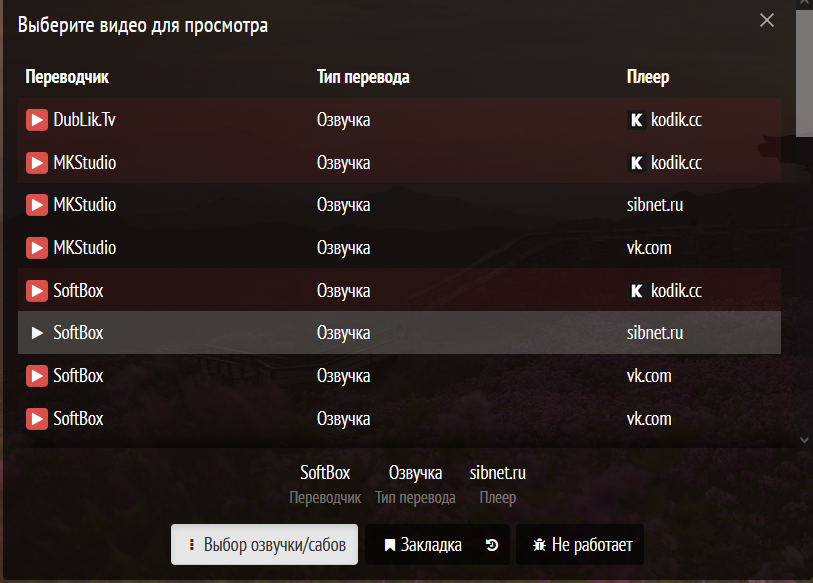 Белл, както ти е написала 2в1, от бутона за избор на озвучка или субтитри избери озвучката на SoftBox качена на sibnet.ru. Там видеата вървят.