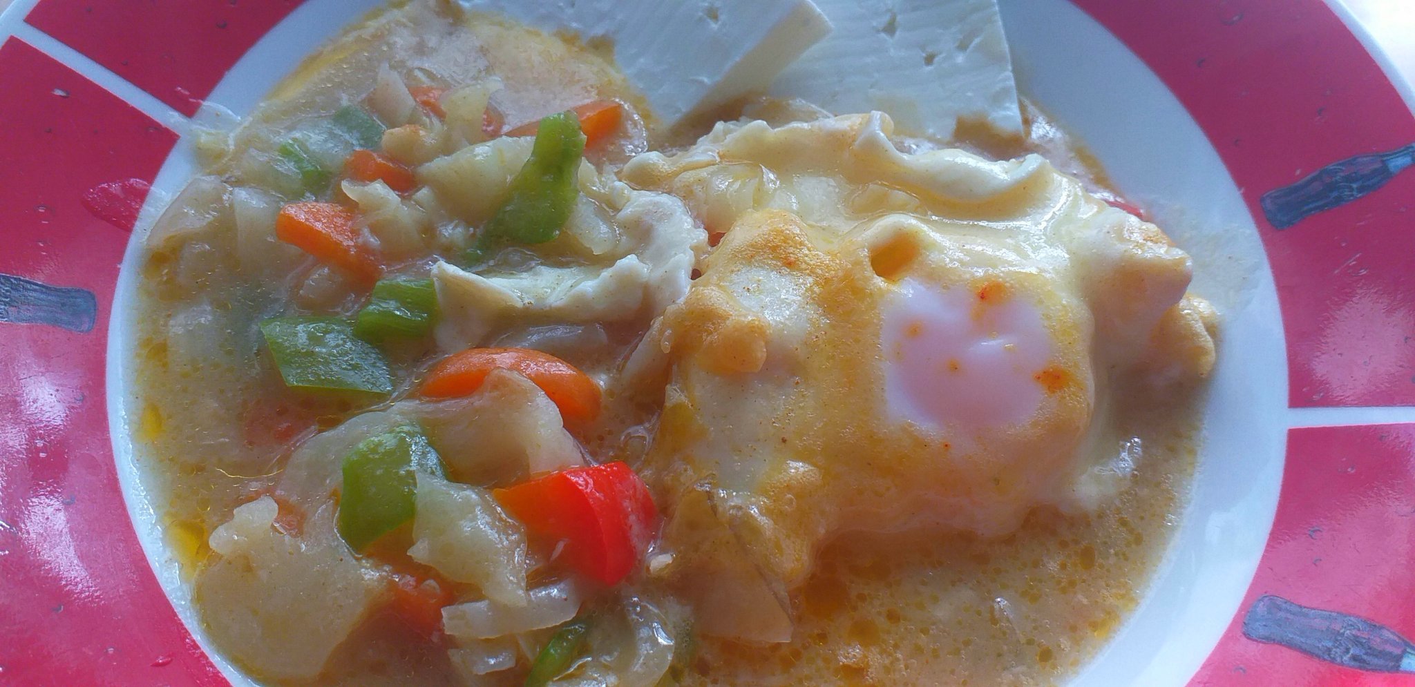 пържени чушки с яйца, суджук и сирене,