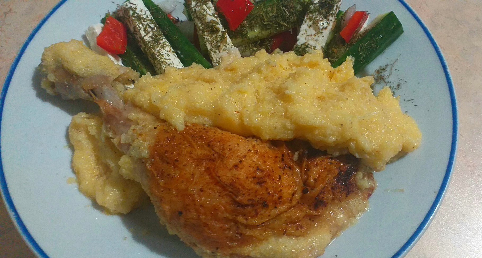 Пилешко с качамак и 🥗: