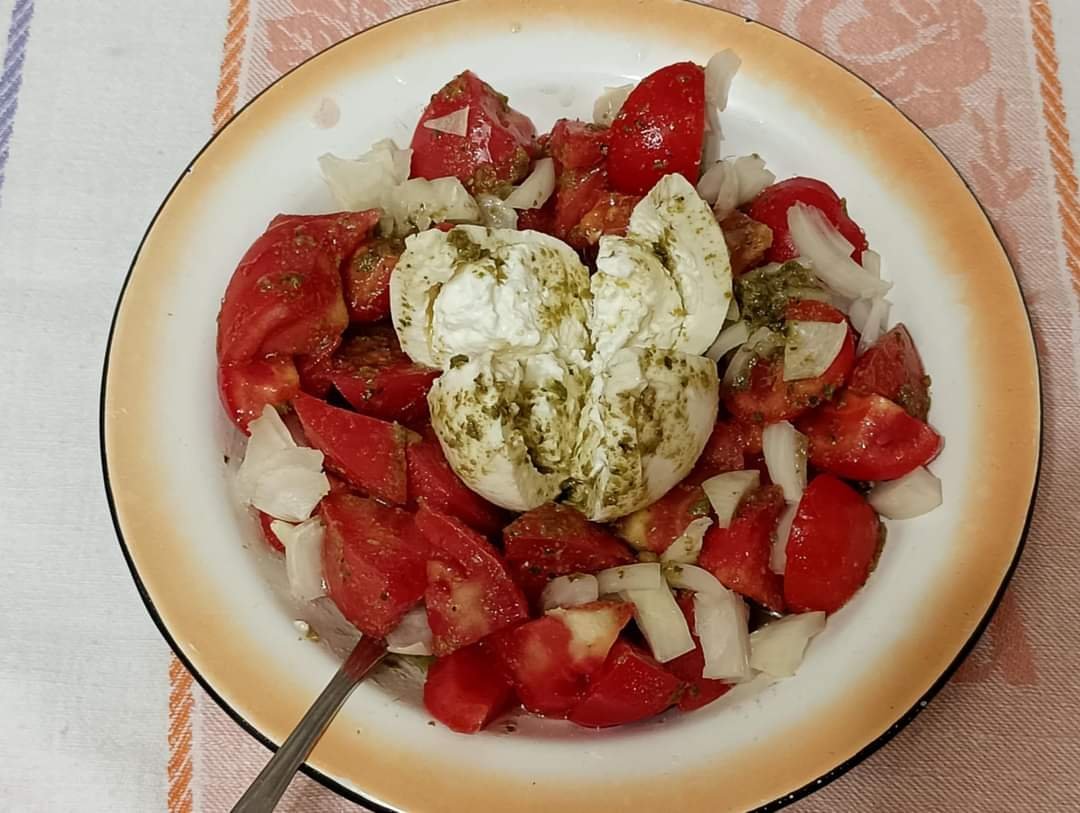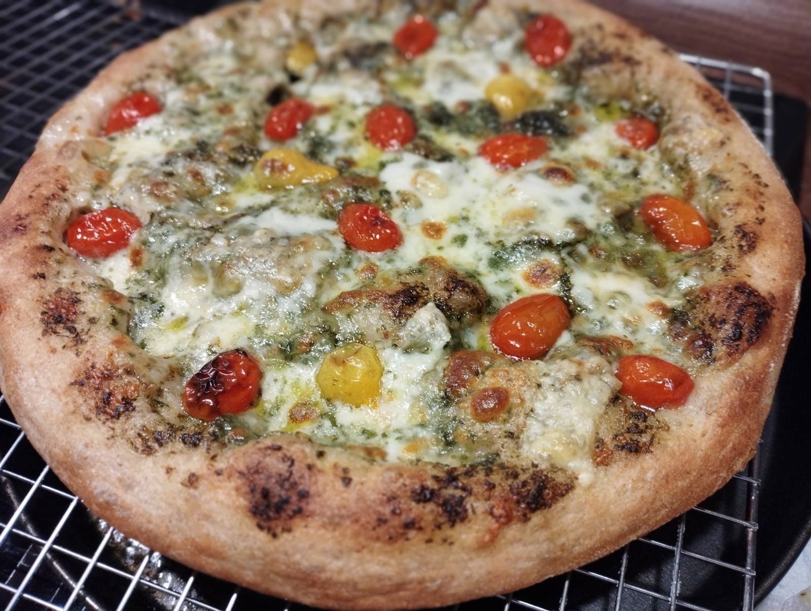 Пица в тава с песто, моцарела и чери домати