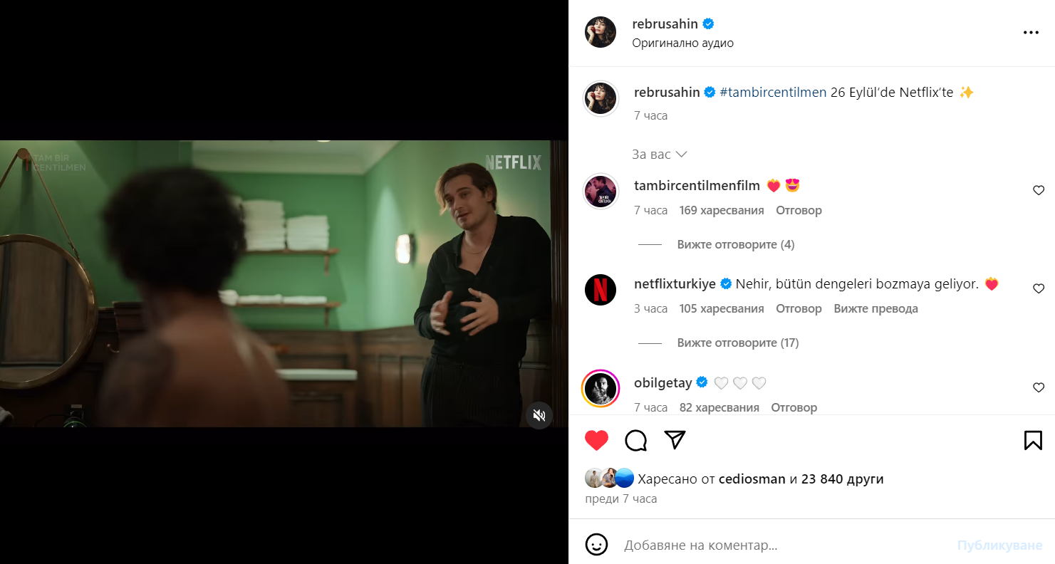 A Complete Gentleman, продуциран от Onur Güvenatam, режисиран от Onur Bilgetay и написан от Deniz Madanoğlu, ще се срещне с публиката в Netflix на 26 септември.