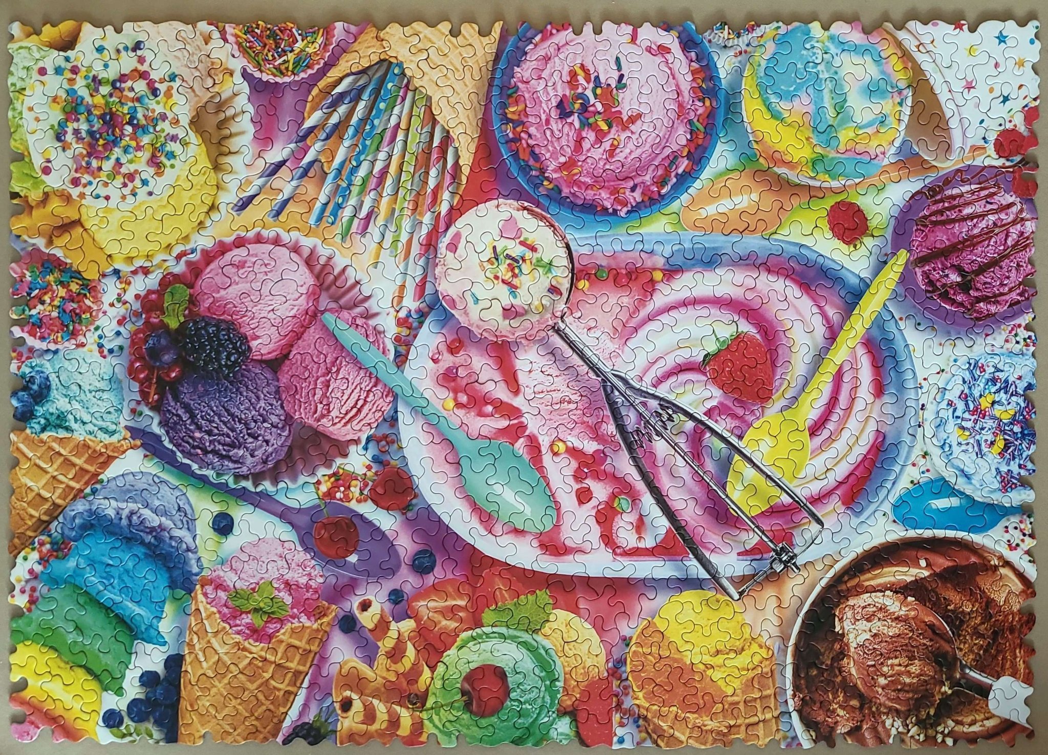 И аз всеки път се тюхкам, че не успявам да направя достойни снимки на пъзелчетата си ❤ Тази твоята е хубава. Между другото, има марки, които са с някакво такова изрязване, което не е подходящо за снимки - твърде отчетливо, не се създава равна картина. За редене са страхотни, но като финален резултат - нещо липсва. А Трефл - точно обратното, реденето им не е чак такъв кеф, а толкова равно застават частите, че лесно стават хубави снимки и въобще, картината не се накъсва. За рамкиране също са много подходящи. Та може би едни марки се целят в това да са хубави за редене, други - да са подходящи за картина за стената. Знам ли ги...