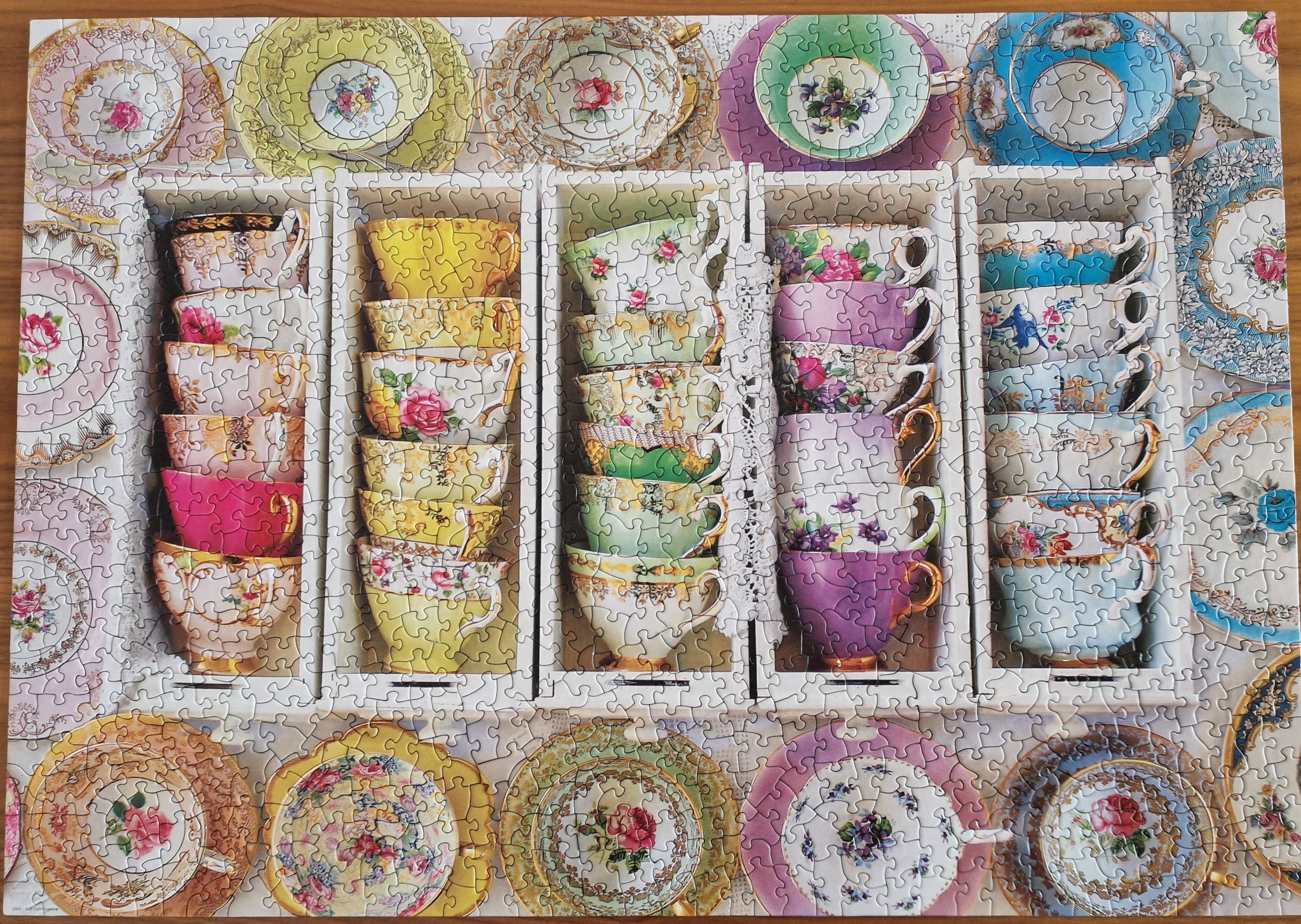 Първият ми пъзел от 1500 части беше това. Не се усетиха никак, отне колкото нормално ми отнема хилядник. Изображението беше много приятно. И оттам нататък - имам само оплаквания. От тази хубава марка са направили незнайно какво. Ясно е, че авторитетът им е голям и лежат на стари лаври, но не знам как могат да си позволят такива издънки. Като за начало - картонът имаше някаква много неприятна миризма (вярно, че беше фабрична, но защо другите пъзели нямат такава, явно има начин да се отстрани) и стърготините бяха много повече от обичайното. Айде, това го преживях. За хлабавата сглобка писах вече - не можех да местя нормално малките секторчета, разваляха се при най-малкото движение. Огънатите уши даже не съм ги броила колко са. И върхът - на една от частите просто се беше откъснала долната част от картона на ухото: