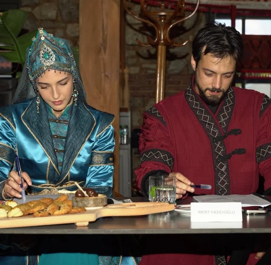 Махасин от четенето на сценария на Орхан. Костюмът ѝ отива. И Мерт Яз... хич не е зле.