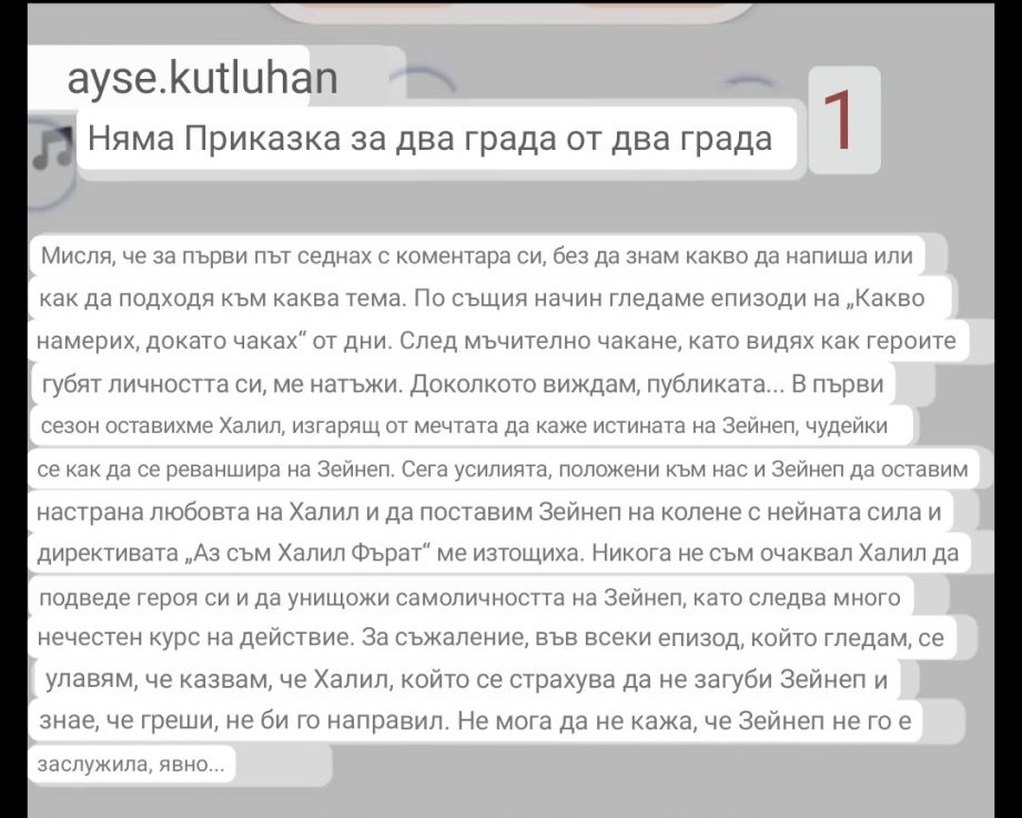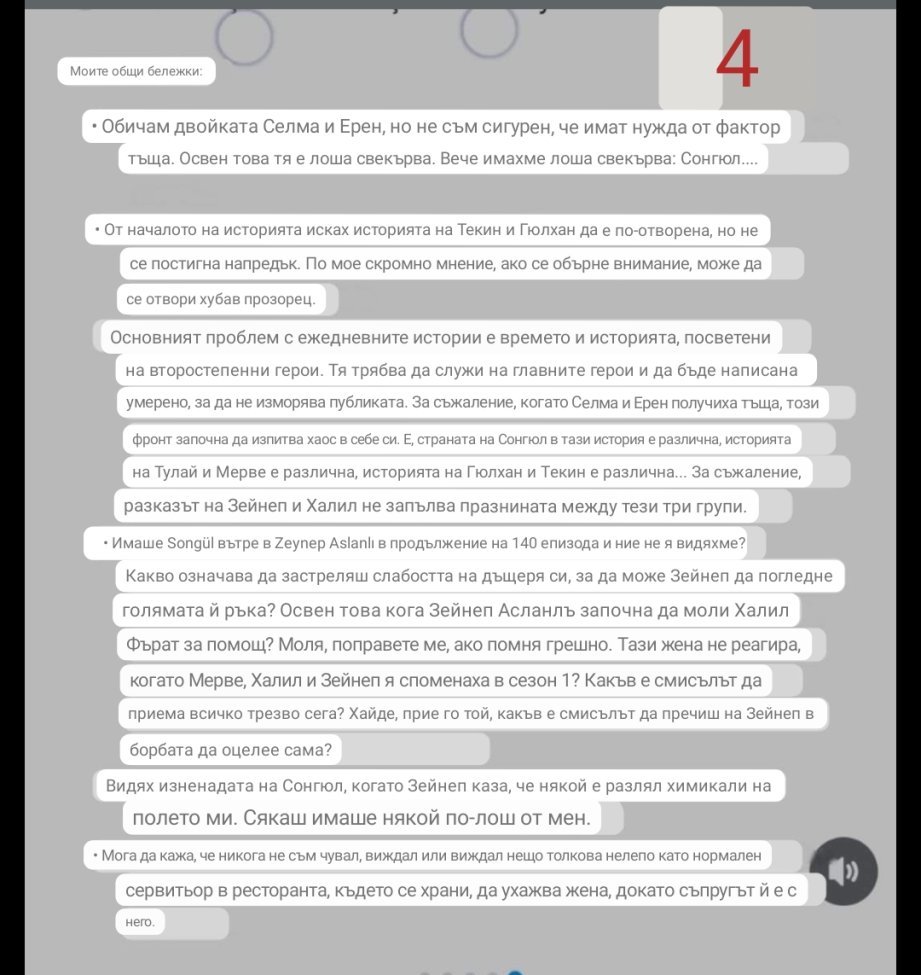 Имам подозрения, че смяната за уикенда е била наложителна, защото са решили да презаснемат епизоди за да изчистят глупостите, които натвориха новите сценаристи. В епизод 89 Халил обича лук, но в епизод 136 вече не. И това е най-малкото. По отношение на характерите на героите даже бившата главна сценаристка постна мнение, доста критично.