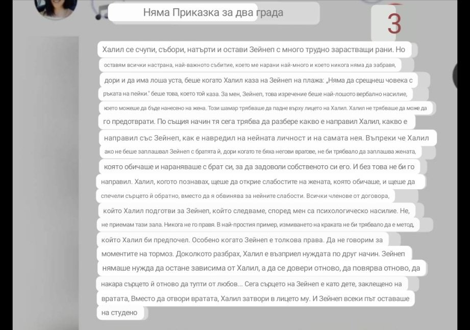 Прекалява Зейнеп, но като се сетя и той какво ѝ причини в началните серии. Дано скоро някъде да се преплетат пътищата на любовта им, че не ми се гледа цял сезон инат и отмъщение.