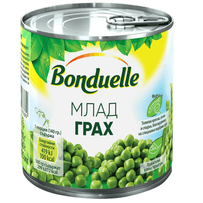 Преди години харесвах всичко на Бондюел. С течение на годините съм купувала и неща, които не ми харесват, в това число и грах консерва - едър и недоварен. В последно време най-много харесвам консервите грах на Кауфланд с тяхната марка. Харесва ми и че имат и в малки кутийки, опаковани по 3.