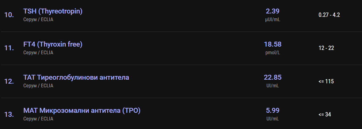 Това са резултатите от лятото, но там няма FТ3 понеже тогавашната ми ендокриноложка не го назначи: