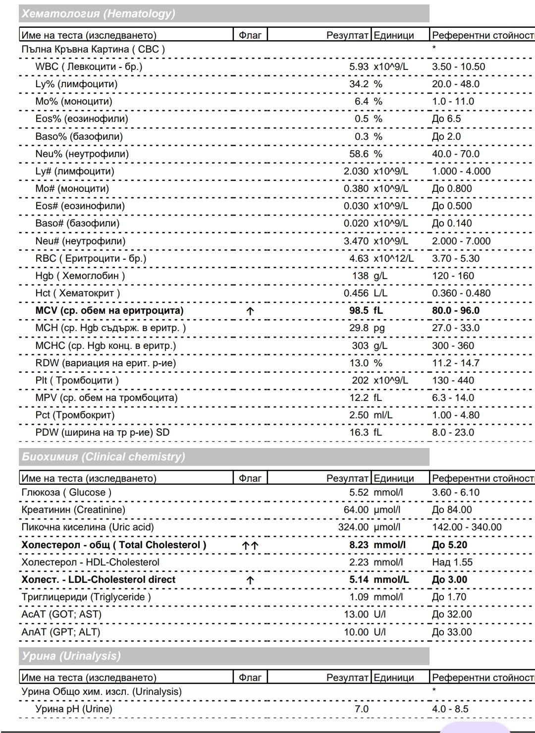 Иначе за твоите изследвания и Стела е права, но и след като си намалила въглехидратите, вероятно си засилила протеините или аз поне така правя започвам да ям повече кашкавал, сирене, яйца а те си вдигат холестерола.