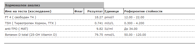 И така сега бях в очакване какво е станало като си вдигнах отново дозата и вече 3 месеца вече съм на нея, защото се чувствам добре. Ето това са ми резултатите - щитовидни, холестероли: