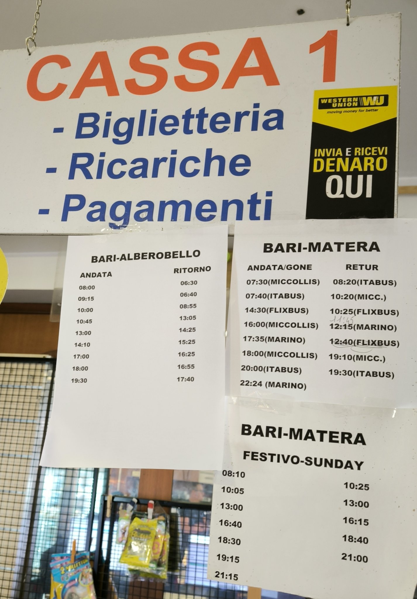 Мястото на което спират автобусите е по-далеч от ж.п. гарата в Матера.