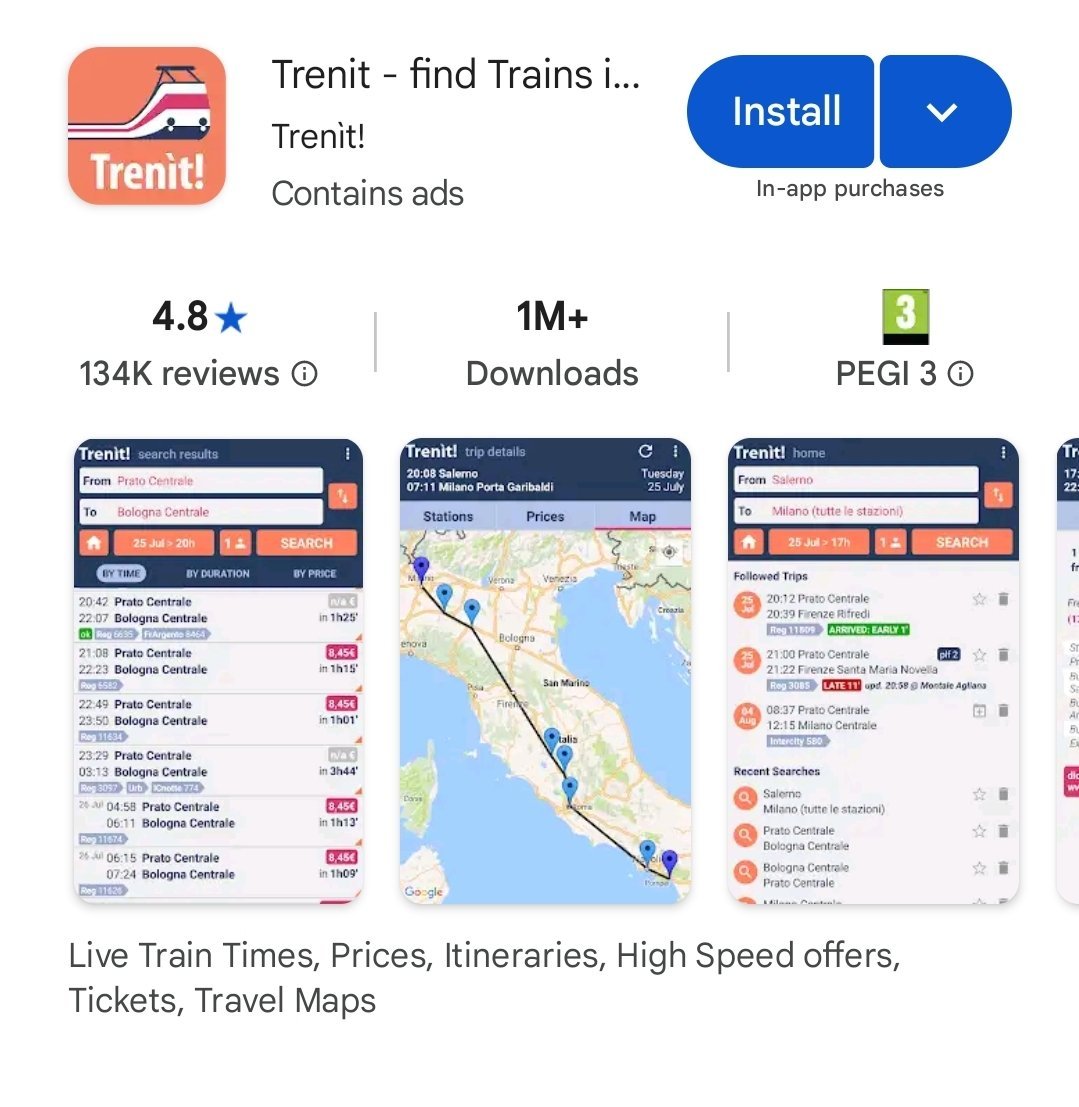 Някой може ли да каже кое е мобилното приложение на trenitalia, защото не успявам да го открия?