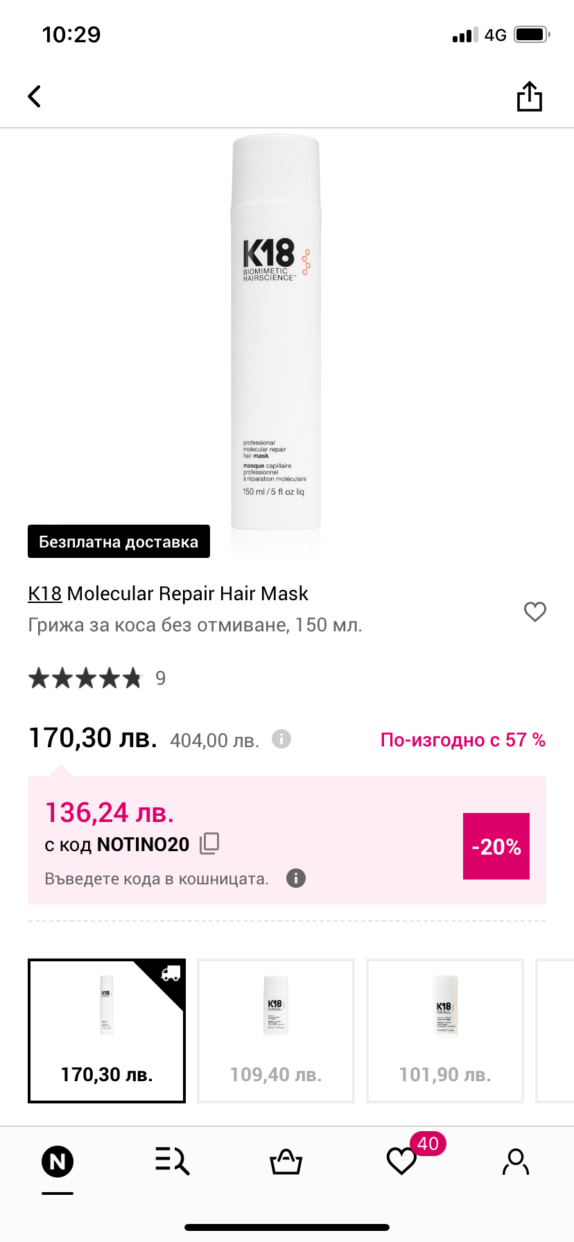 Опитах да поръчам от Нотино през инкогнито браузър.Зачете нотино20 кода, но като завърших поръчката, цената се смени веднага.Добре, че погледнах.Дано го поправят...