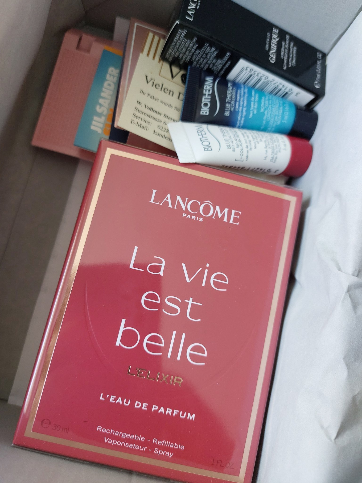 Пореден позитивен отзив от мен за Parfümerie Vollmar. La vie est belle Elixier 30 ml ми струваше 49,99€.Дойде за три дни, с шест мостри, въпреки, че поръчката ми в сайта е още със статус в процес на обработка. Забелязвам, че изчезва много бързо от сайтовете, където съм видяла, че е наличен. Доволна съм много!