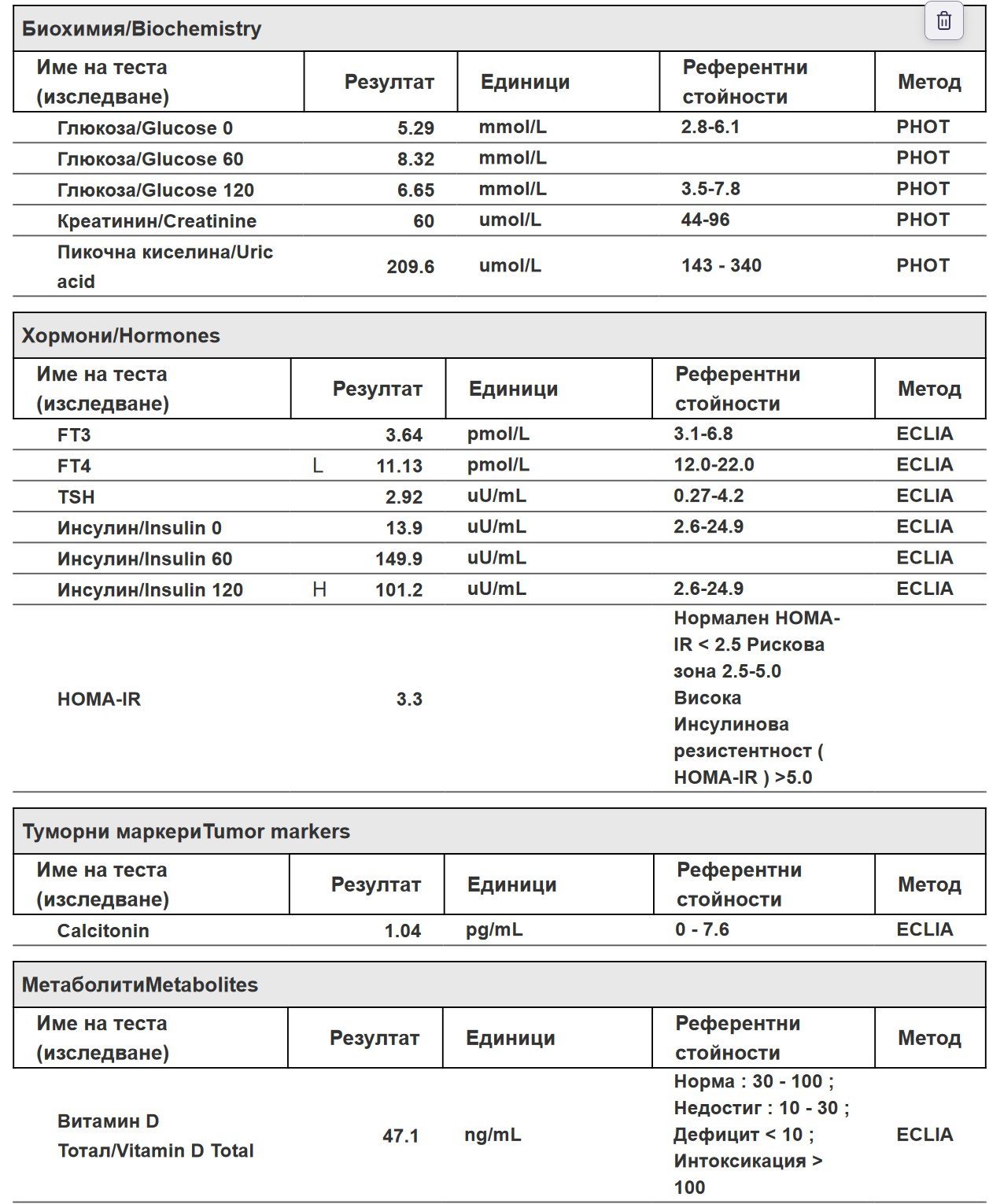Инсулиновата резистентност (IR) е състояние, при което клетките на тялото не могат да реагират адекватно на инсулина, произведен от панкреаса. Това води до увеличаване на нивата на инсулин в кръвта и може да доведе до метаболитни нарушения, включително захарен диабет тип 2. Диагностицирането на IR обикновено се извършва чрез тестове за нива на инсулин и глюкоза. Често се използват специфични тестове, като например OGTT (орален глюкозотолерантен тест), за да се провери как тялото обработва захарта във времето.