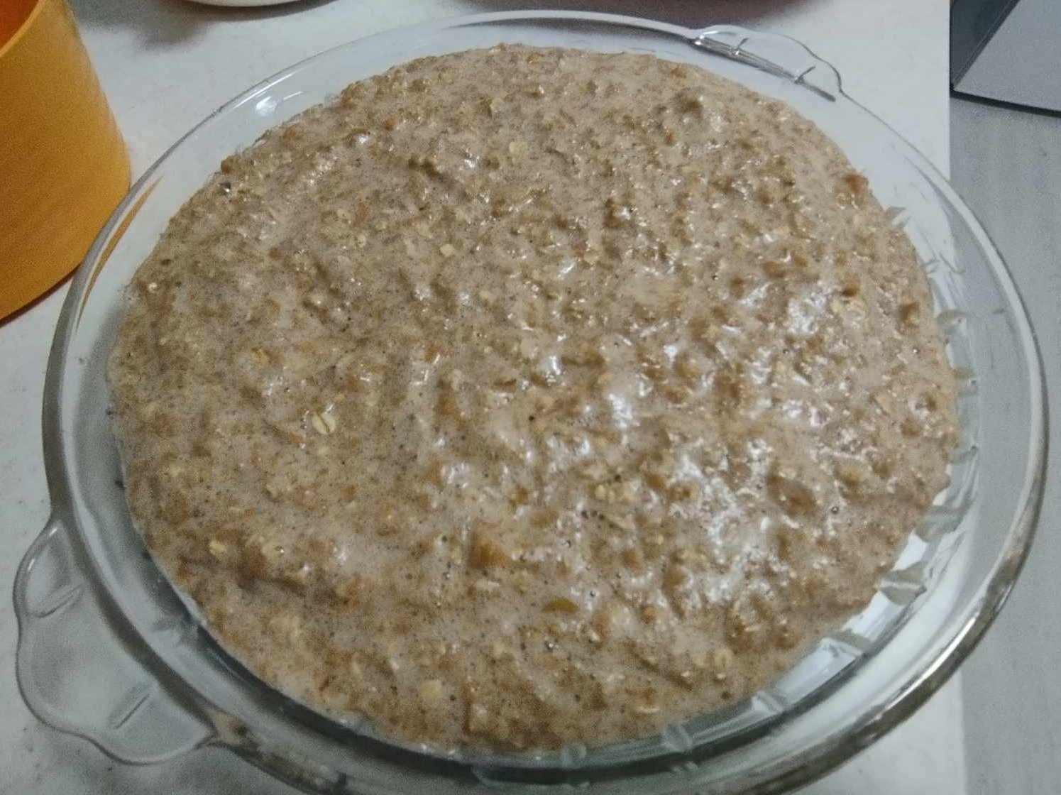 Да споделя един много сполучлив сладкиш /кекс/ с ябълки и овесени ядки, който правих вчера. Междудругото за първи път в живота си ям овесени ядки. Преди да мина на режим, редовно си правих щрудел, защото много обичам вкуса на ябълки и канела. Половинът също. Сега импровизирах с овесени ядки, яйца,  ябълки и канела. Стана много вкусно. Няма мазнина, тъй като е с повече въглехидрати заради овесените ядки, но е нискокалоричен. Единствено намазах формичката с масло отдолу. Ще го правя пак, хареса ни много.