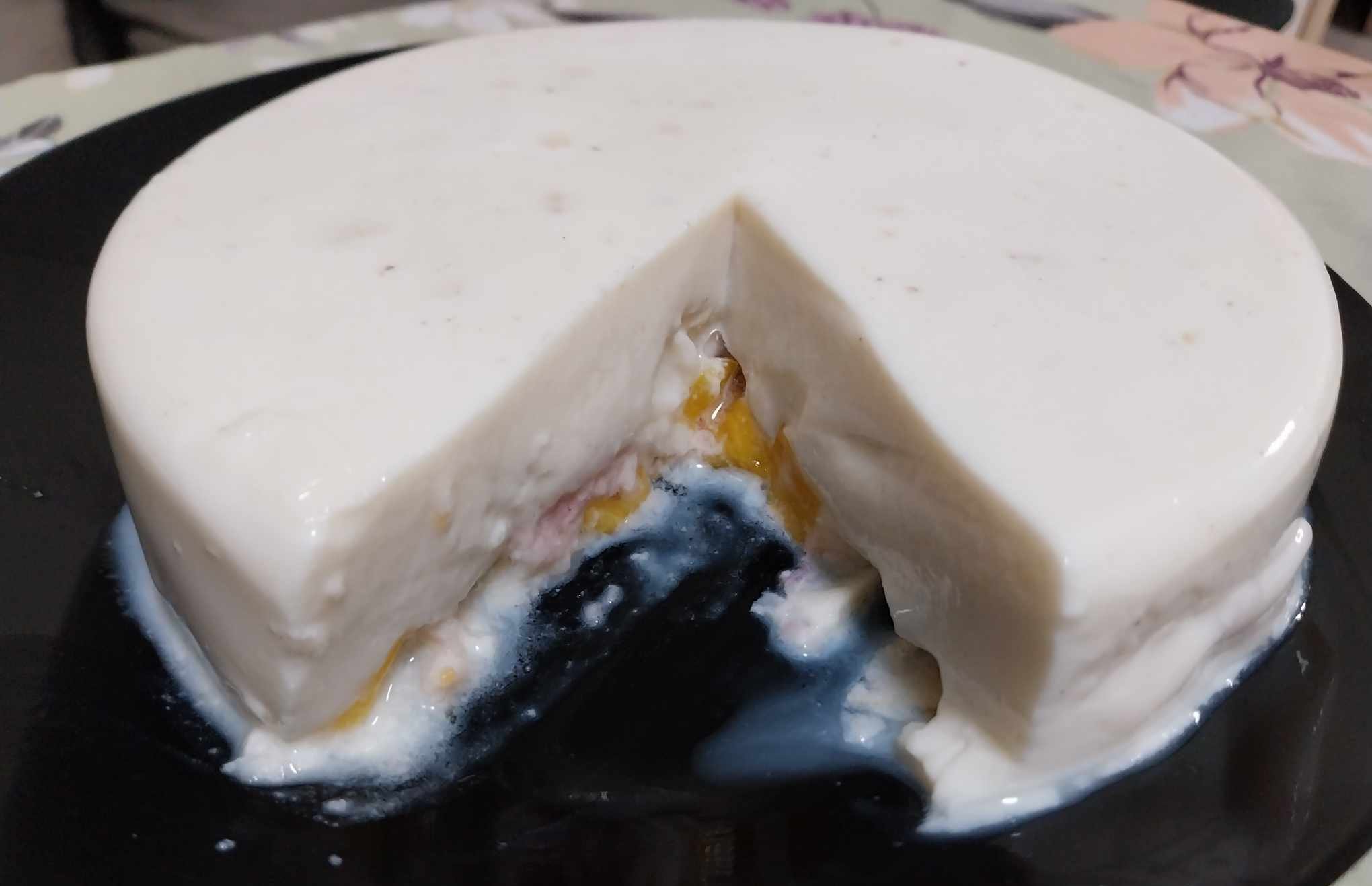 Разбива се киселото мляко с еритритола, добавяте какъвто ви кефне плод и накрая се слага вътре сместа с агар-а.