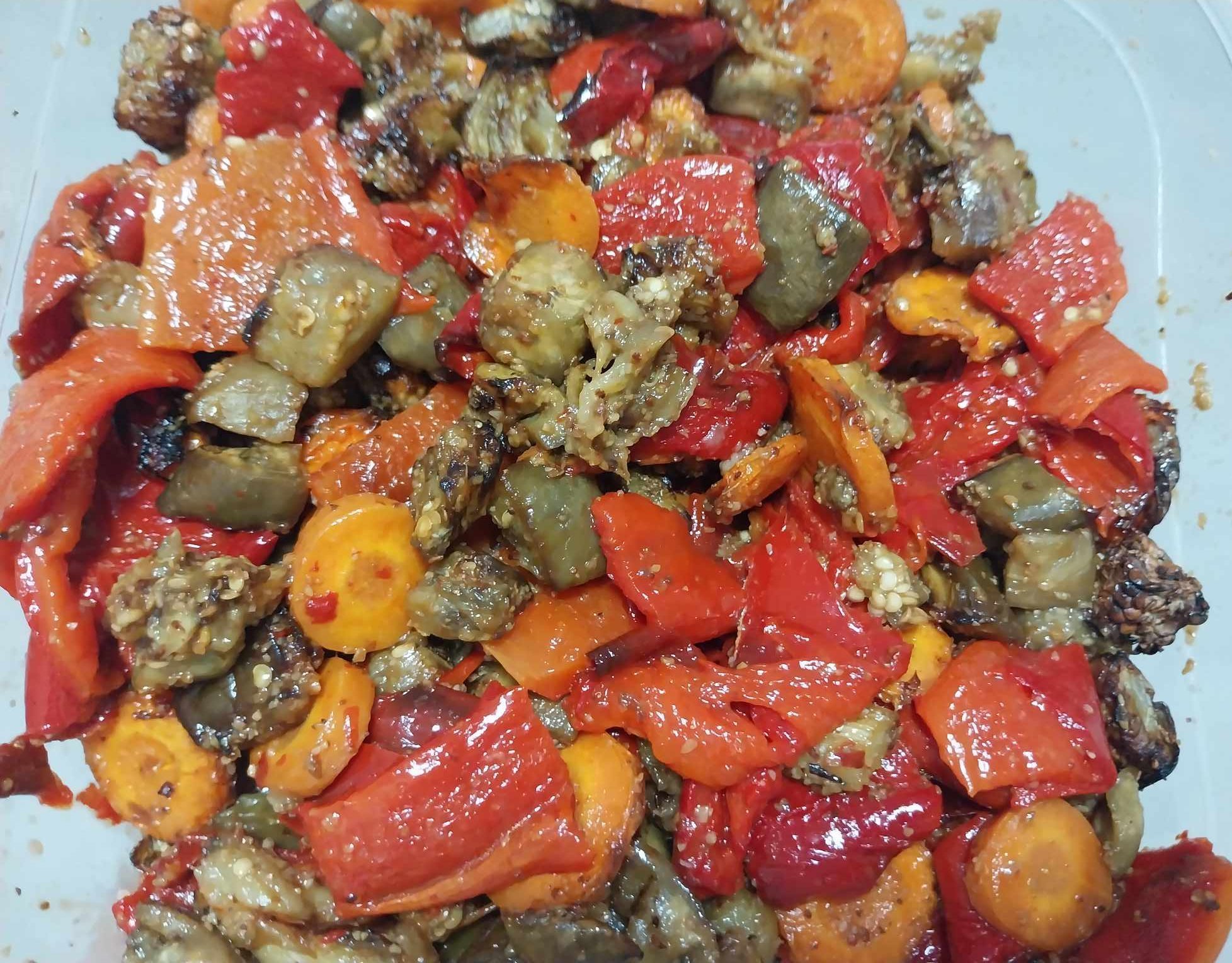 Днес сме на кюфтаци + гарнитура патладжани, моркови и чушки - печени на фраера. Една дружка ми донесе от село и имам за седмица напред.