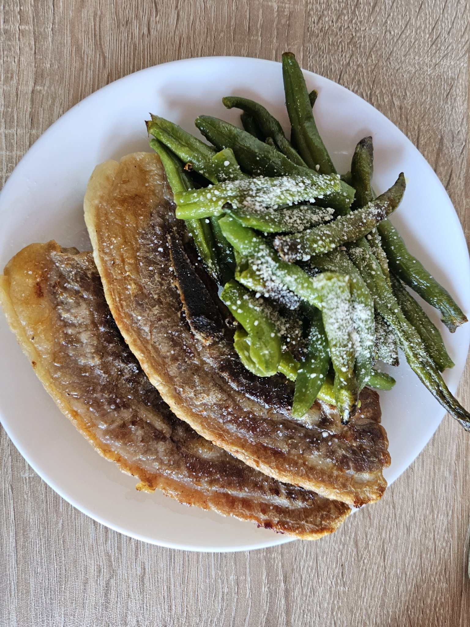 Днес за обяд беше свинско със зеле, за довечера ме чакат свински ребра и пак от този зелен фасул.