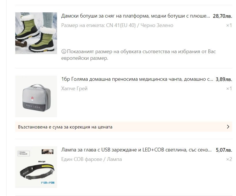 Скриншотовете стават да видиш на каква цена може да се вземе продукта, защото често тя не е такава каквато се вижда в линка в момента.