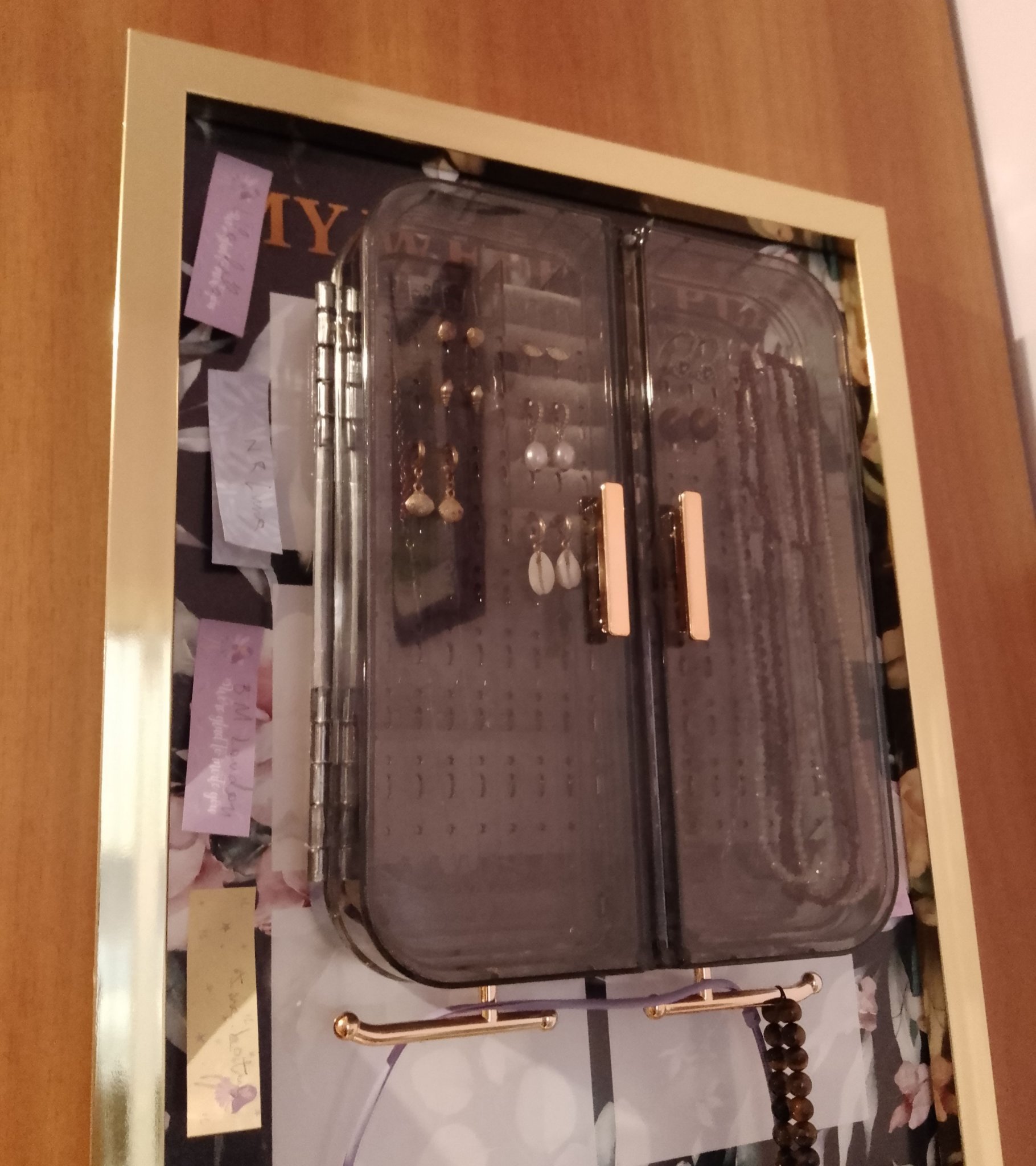 Много са гадни тези снимки. Ясно, че има размер, но наистина тази етажерка за бижута изглежда по-голяма като в нея са наредени бижута и пръстени. Според мен нарочно правят снимки в действителност на по-големи размери и после слагат реални размери. Визуално окото ти се лъже и поръчваш, после който мерил-мерил.