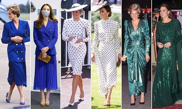 Катрин не иска да създава визуални асоциации на себе си с Даяна. Тя заема същото място като покойната си свекърва, но по нейно признание иска да изгради тази титла по начина, по който тя я вижда, а не както я изгради Даяна. Освен това се опитва да избягва асоциациите с Даяна, защото визуално не си приличат, както и като излъчване. Катрин не идва от аристокрацията и има друго възпитание, друг маниер на поведение също. Затова по-скоро иска да избяга от такива асоциации, отколкото да ги утвърждава. В същото време е в много деликатна ситуация. Уилям иска да отдава почит на майка си и Катрин отдава почит на свекърва си с някои тоалети. Специално за роклята с точките беше обяснено, че е избрана нарочно точно с цел да напомни за този момент с Даяна Така че, да , избрала я е заради Даяна, това е нейно признание. При изписването на Шарлот е облечена с рокля, която тя иска, защото Даяна никога не е раждала момиче и няма аналогична ситуация там.