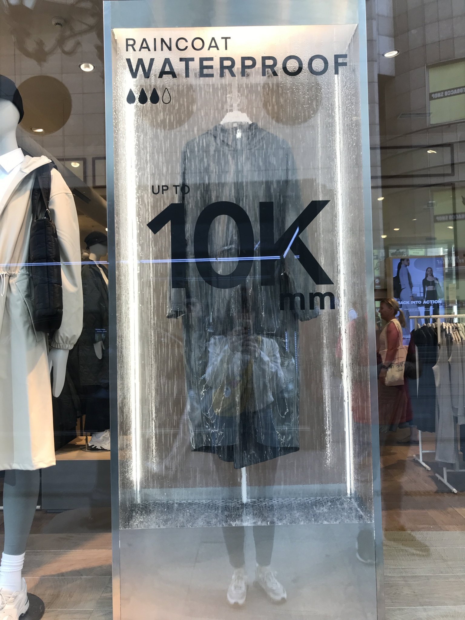 Това от витрината на Ойшо беше много интересно, защото “валеше” постоянно върху дъждобрана.