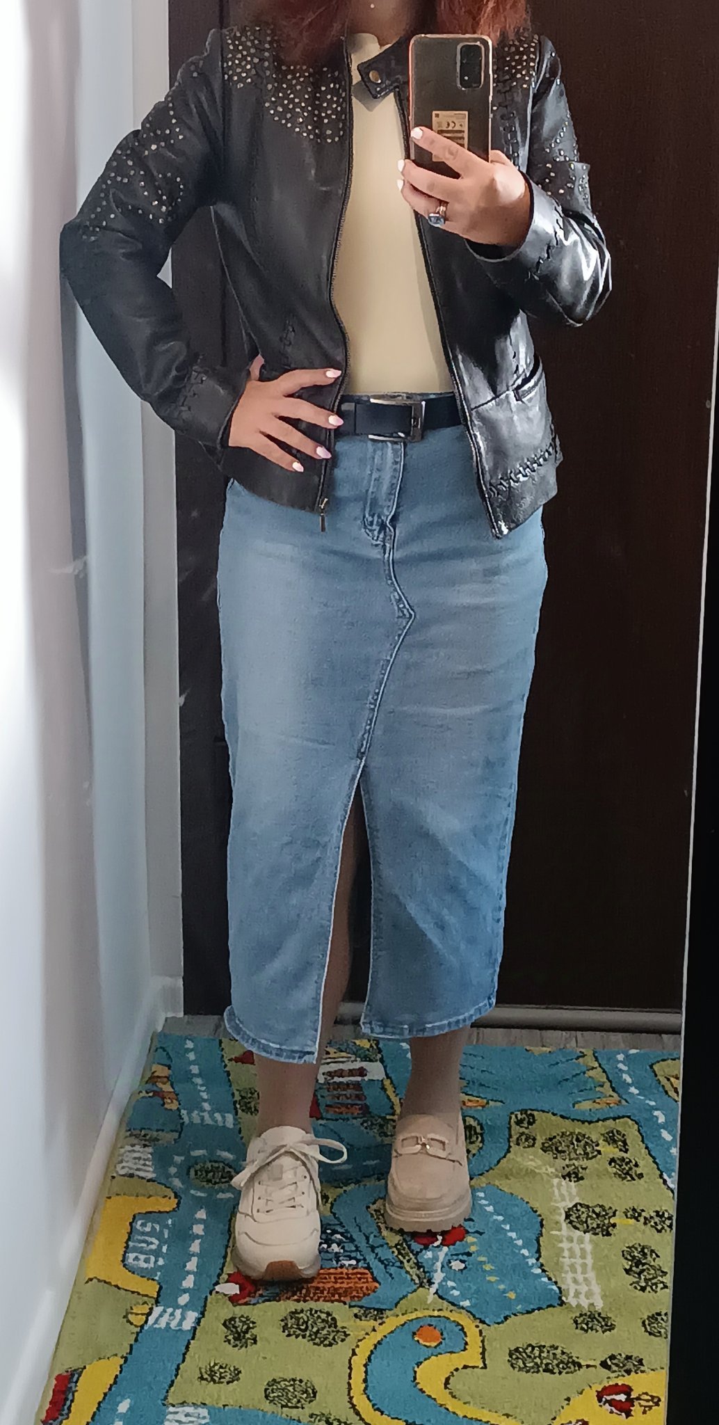 Ако помните, бях ви помолила за идеи за миди дънкова пола, която купих под ваше влияние, изобщо не бих си и помислила за такава Simple Smile Благодаря за идеите и клипчетата, сега умувам с кое е по-добре да я съчетая - маратонките или лоуфърите, прилагам снимка.