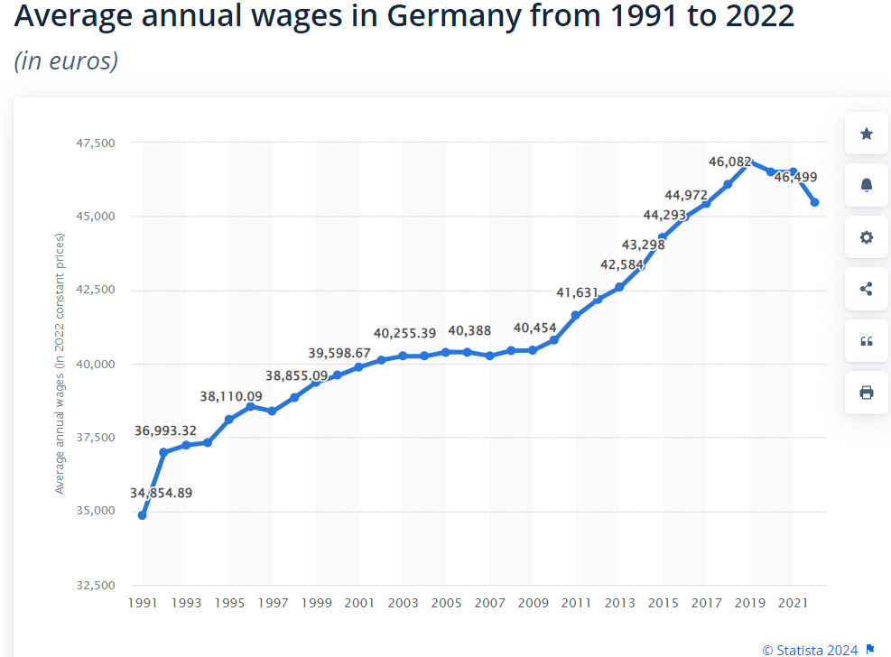 Има ли обаче такъв ръст във вече богатите? Ето например за Германия средната заплата каква е:
