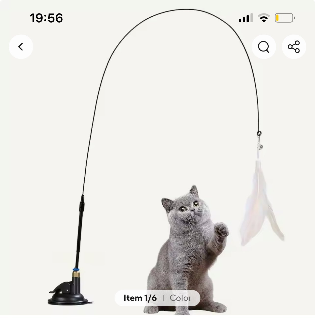 Играчките при нас са това, плюс няколко мишлета. Като това с перцата има и с въженце с мишка на края, точно въдичка.