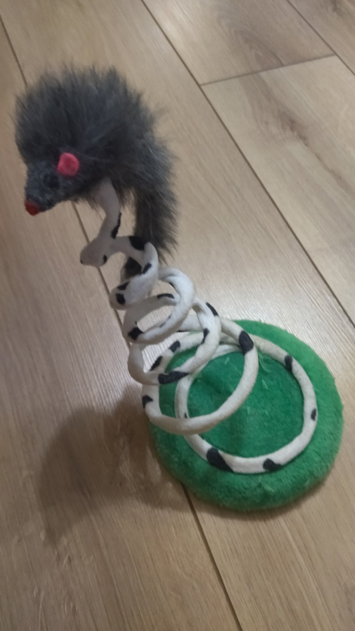 Имаше и риба която мърда, но ми се досвидяха 20 лв. Ние преди правихме от стари дънки, като чантичка с цип и вътре котешка трева, голяма любов падаше и игра. Или пак от стари дънки - топка. Иначе има и просто смачкана хартия на топка, хартиен плик, кашон. С последните две е голяма игра. Също като човешките деца. Моите какво ли нямаха, а накрая игра с пластмасово шише.