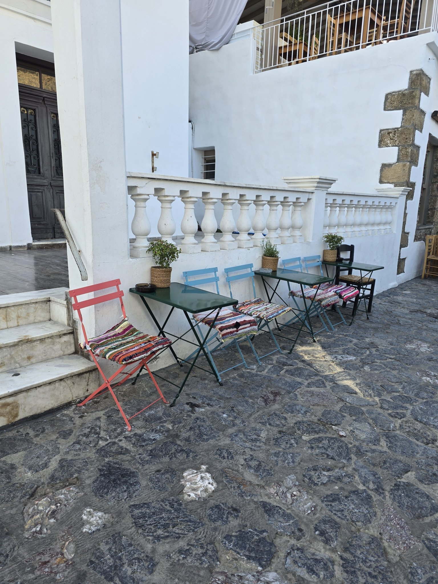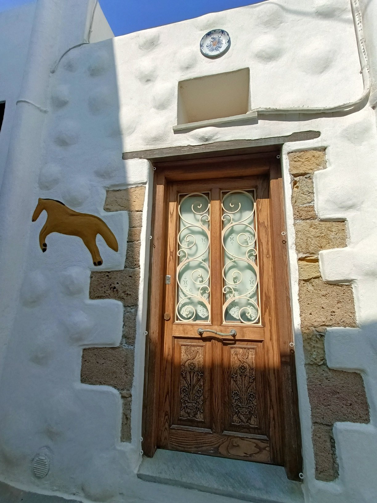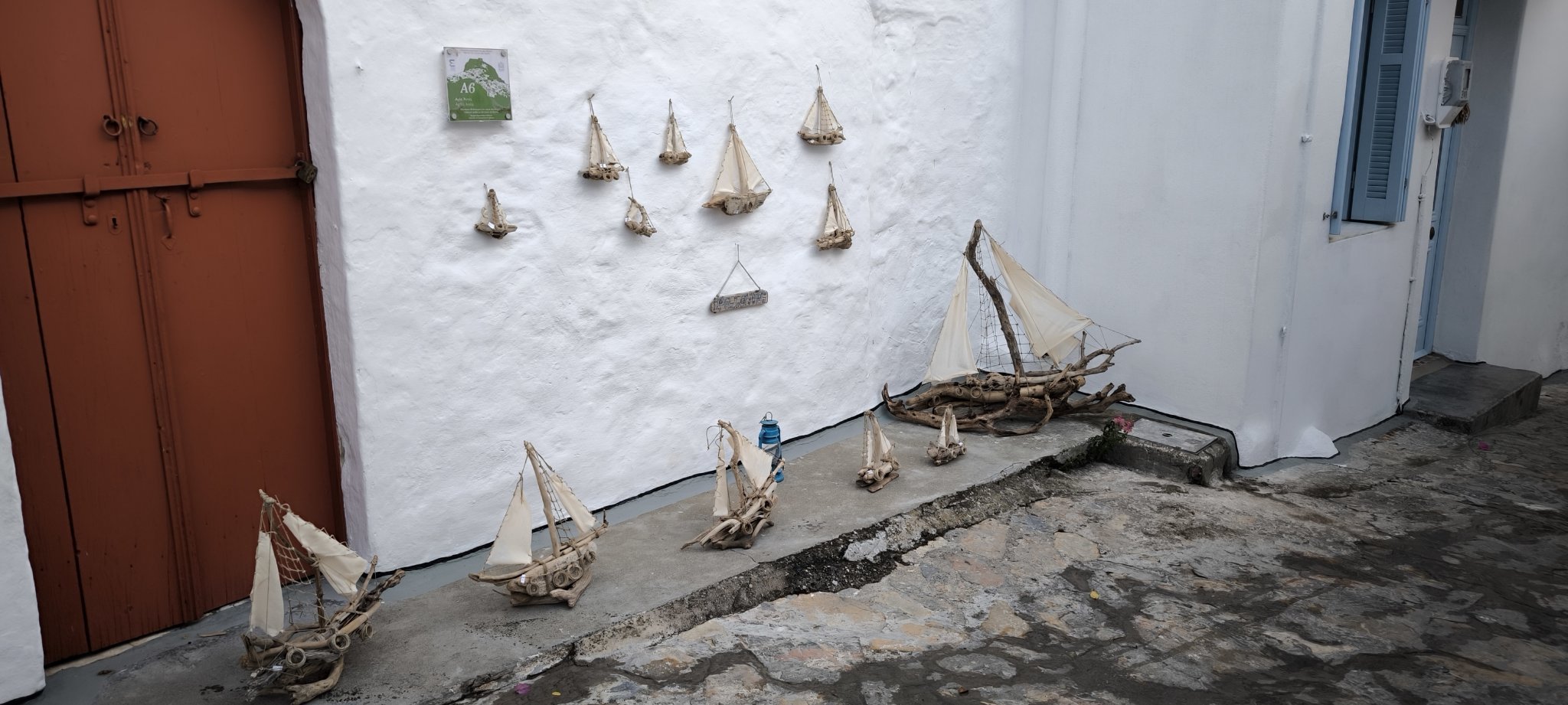 Това, което много ме привлече, бяха традиционните скироски къщи - бели отвън, а вътре дърворезби, медни и глинени съдове, бродирани перденца. Настанихме се в реновирана скироска къща с невероятна гледка към Хората, че даже и място за паркиране. Домакините ни бяха супер готини хора!