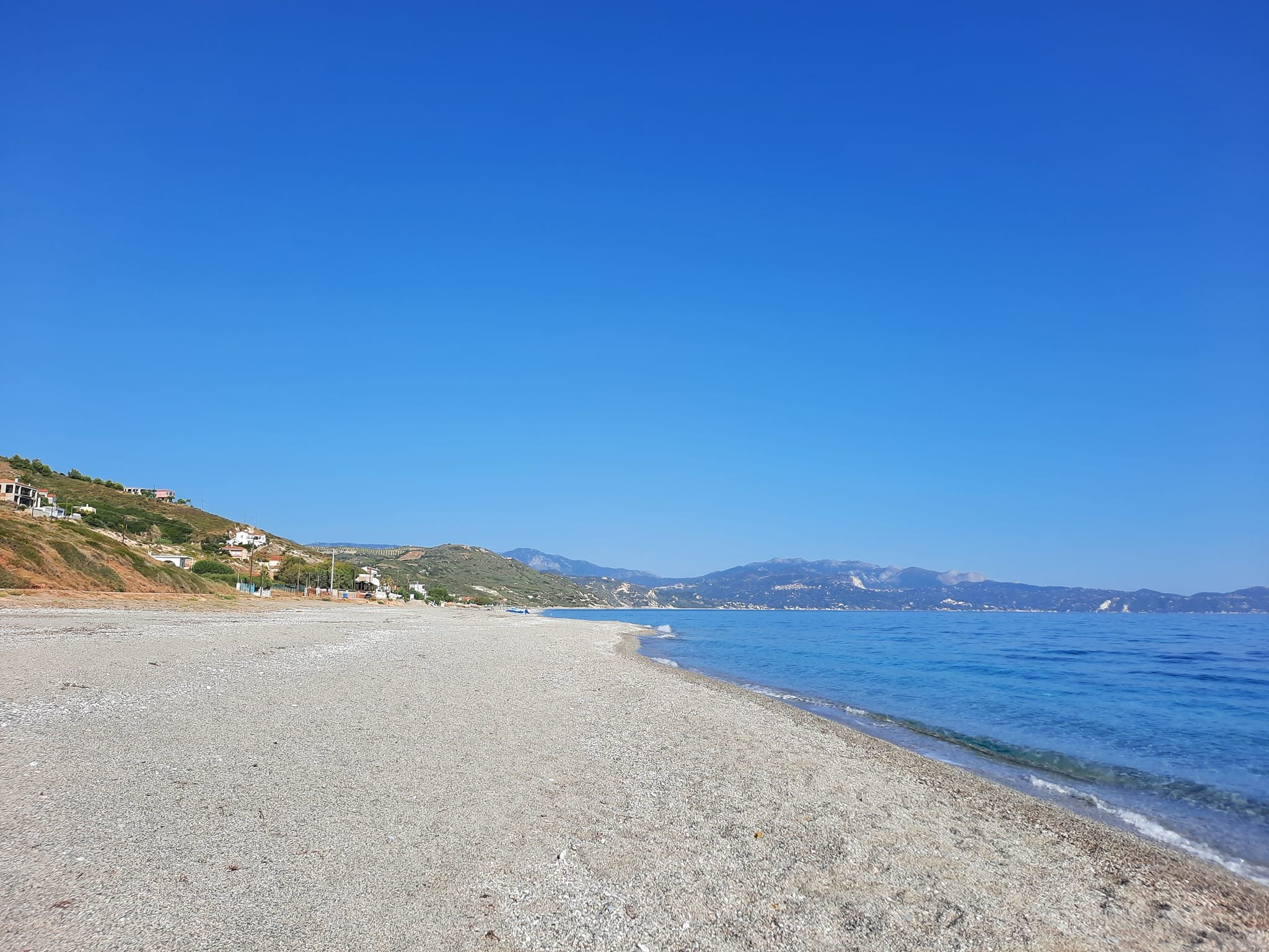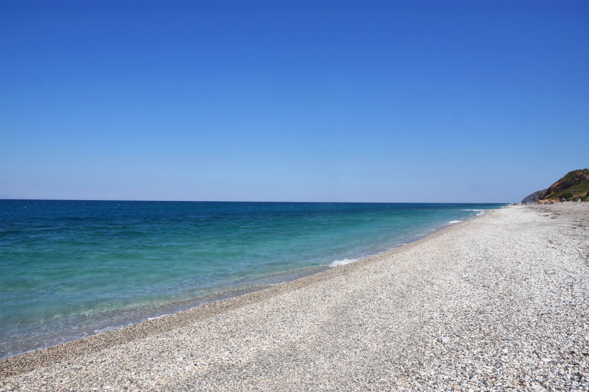 За ориентация - в морето точно там се влива река и няма мост край брега, по който да може да се премине директно в посока Стомио, Платана, Кими, а трябва да се завърти през вътрешността.