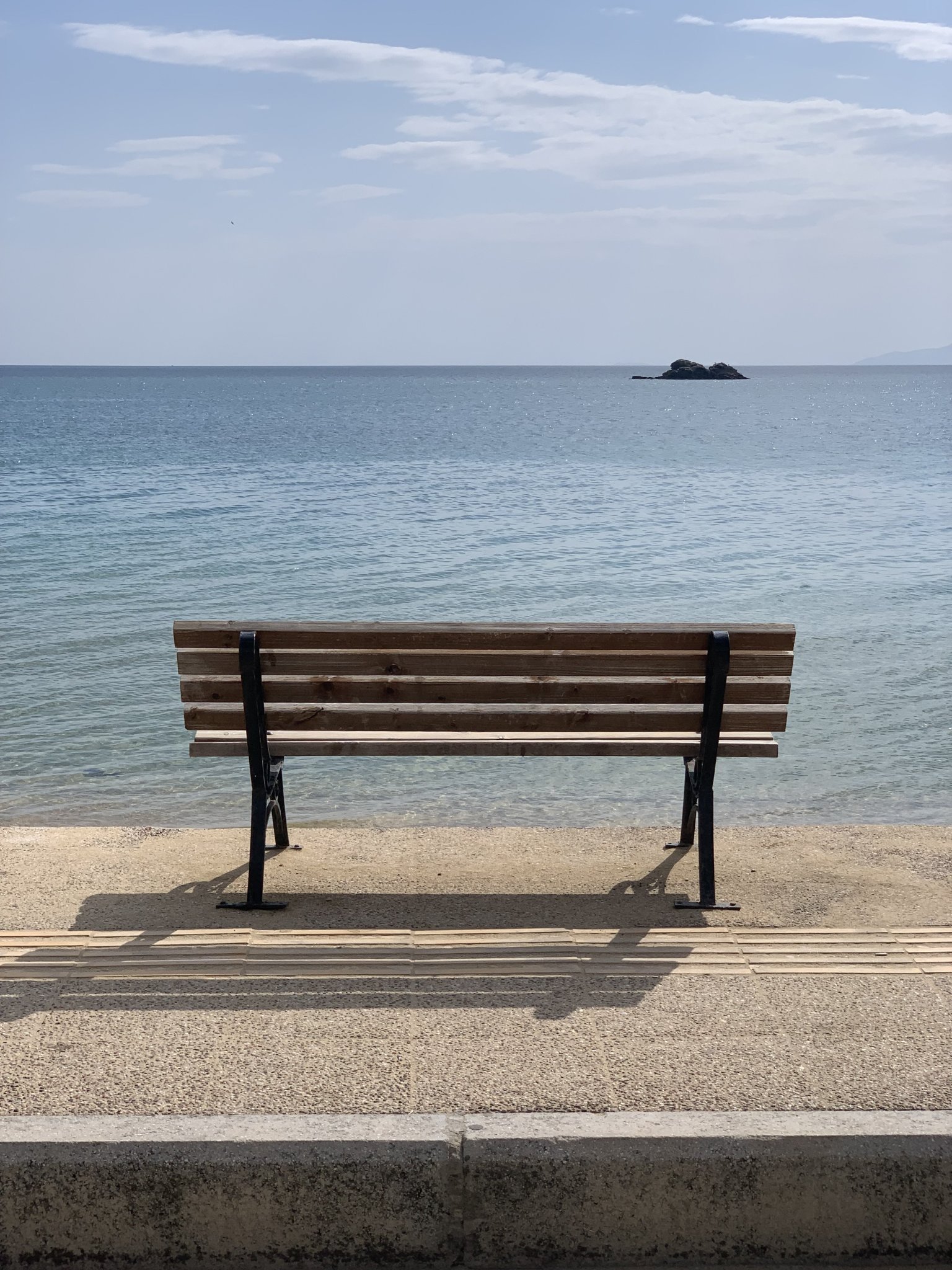 Третата снимка е от Неа Перамос. Мястото е около любимата ми Sklaris и една от най-любимата ми пейки.