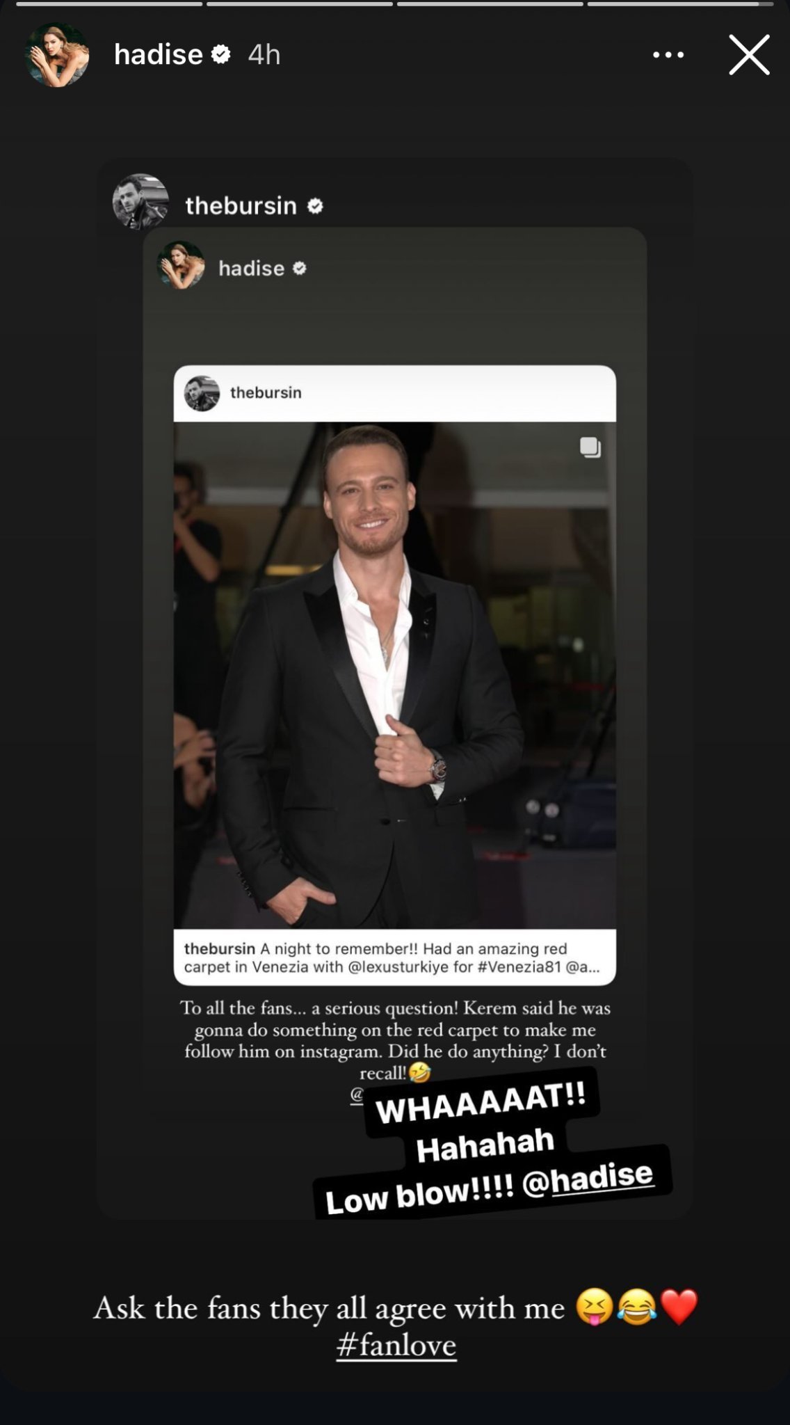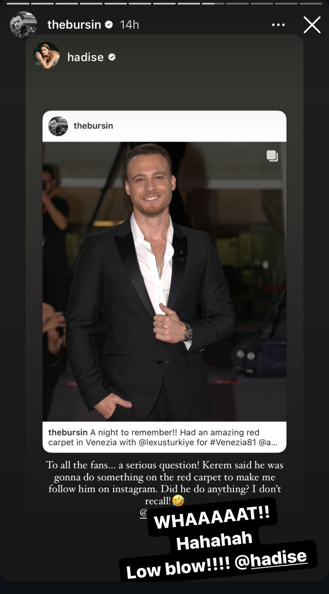 Ако се съди по повторното си последване в Инстаграм Керем и Серхат са се "сдобрили" на фестивала във Венеция Simple Smile ( взаимно са се последвали на 05.09. )