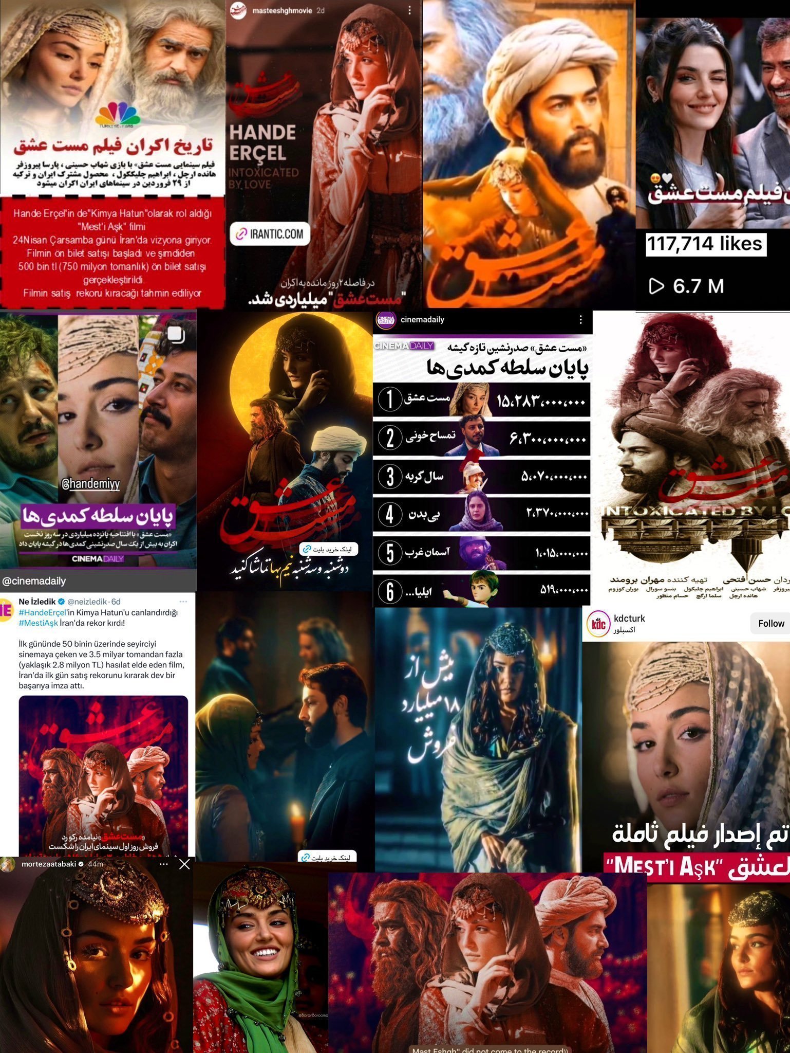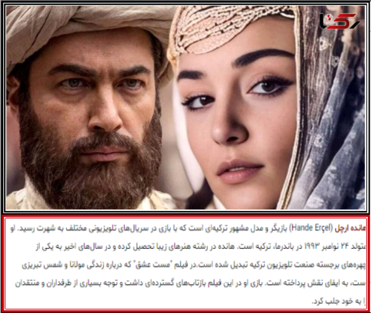 Статия за Ханде Ерчел, която участва като #KimyaHatun във филма #MestiAşk в иранския вестник Rokna