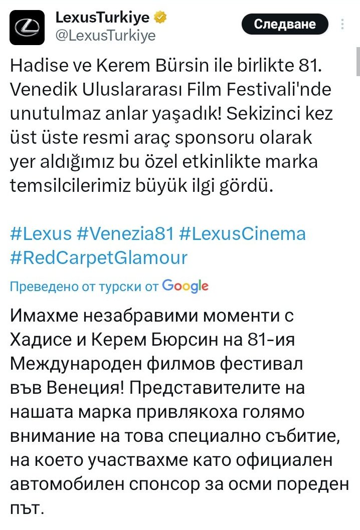 "Керем и Али Хайдар Бозкурт, главен изпълнителен директор на #LexusTurkiye, се последваха в Инстаграм"