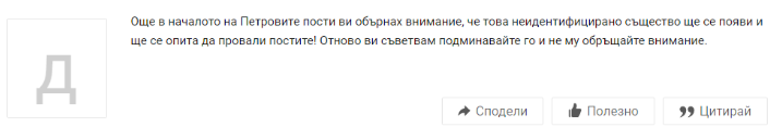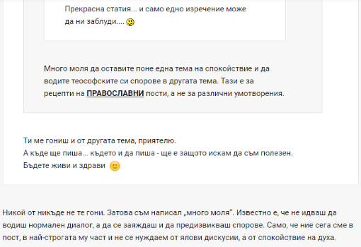 Много по-зловеща беше обстановката тук преди. И с цялото ми уважение и обич, с твое дейно участие - обиждал си, клеветил си, гонил си потребители, многократно си се фръцкал и напускал "завинаги" темата. Но вярвам си искал да бъдеш полезен за нашата православна религия и Църква.