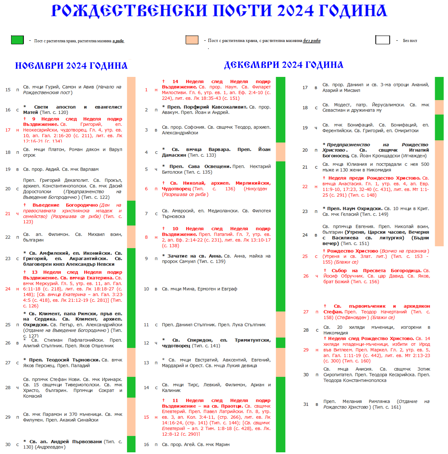 ПРАВОСЛАВЕН КАЛЕНДАР ЗА МЕСЕЦ ОКТОМВРИ 2024 ГОДИНА